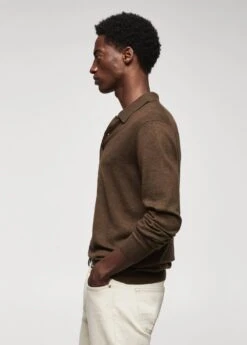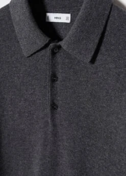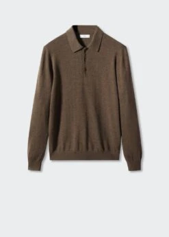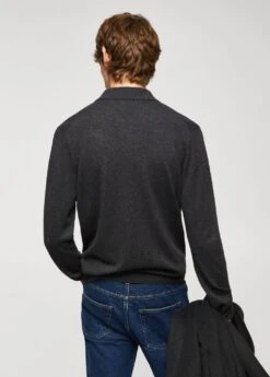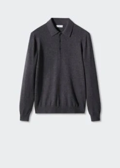 les essentiels : concus pour durer, tissu melange laine et cachemire, tissu en maille fine, jaspe, regular-fit, manches longues, col polo boutonne, bas droit, bords coteles au niveau du col, des manches et sur le bas, le mannequin mesure 190 cm et porte une taille mComposition: 53% polyamide,43% laine,4% cashmere
