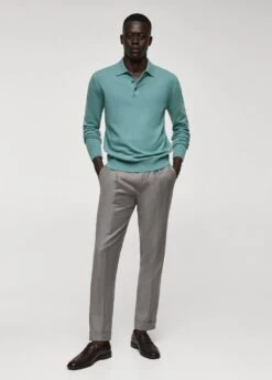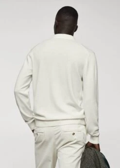 tissu de laine et cachemire melanges, tissu italien, col polo boutonne, tissu en maille fine, coupe droite, manches longues avec poignets elastiques, bas droit, bords coteles au niveau du col, des manches et sur le bas, le mannequin mesure 190 cm et porte une taille mComposition: 54% polyamide,41% laine,5% cashmere