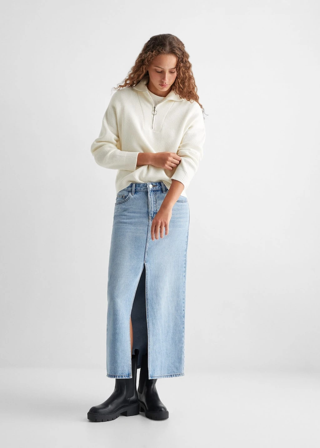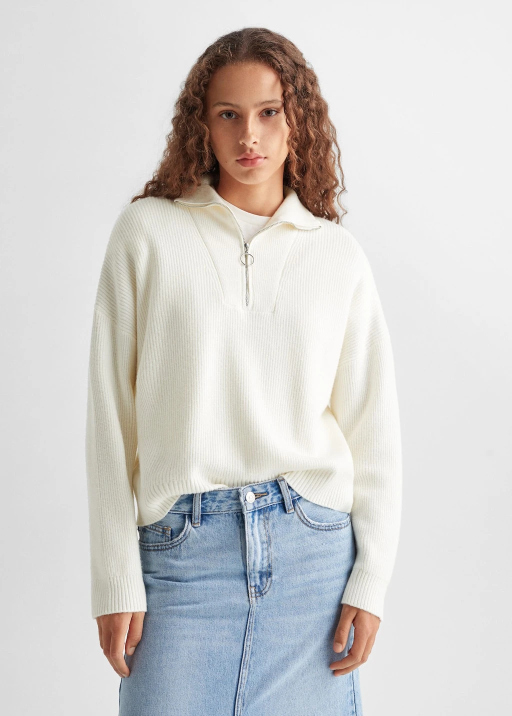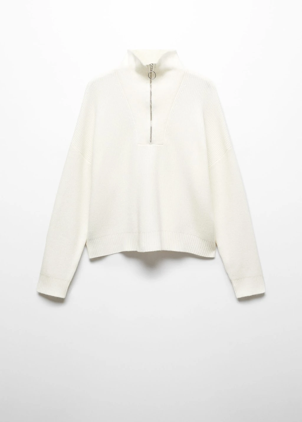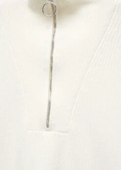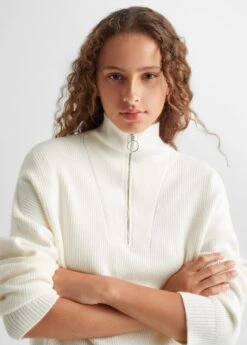 tissu en grosse maille, coupe longue, coupe droite, col montant, manches longues, fermeture eclair au col, le mannequin mesure 172 cm et porte une taille mComposition: 50% viscose,28% polyester,22% polyamide