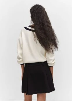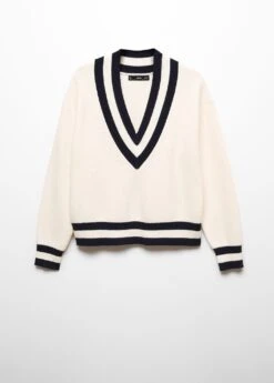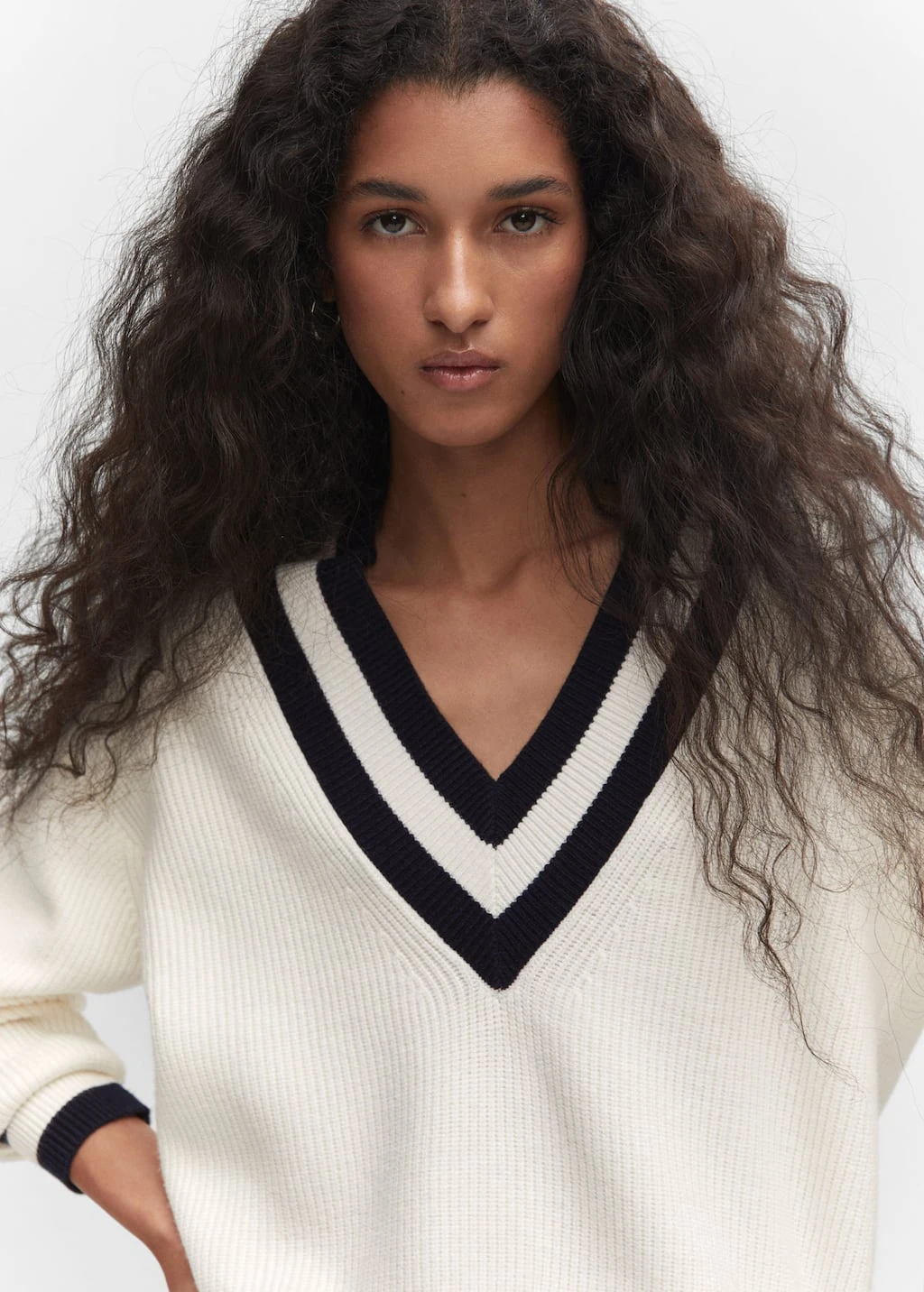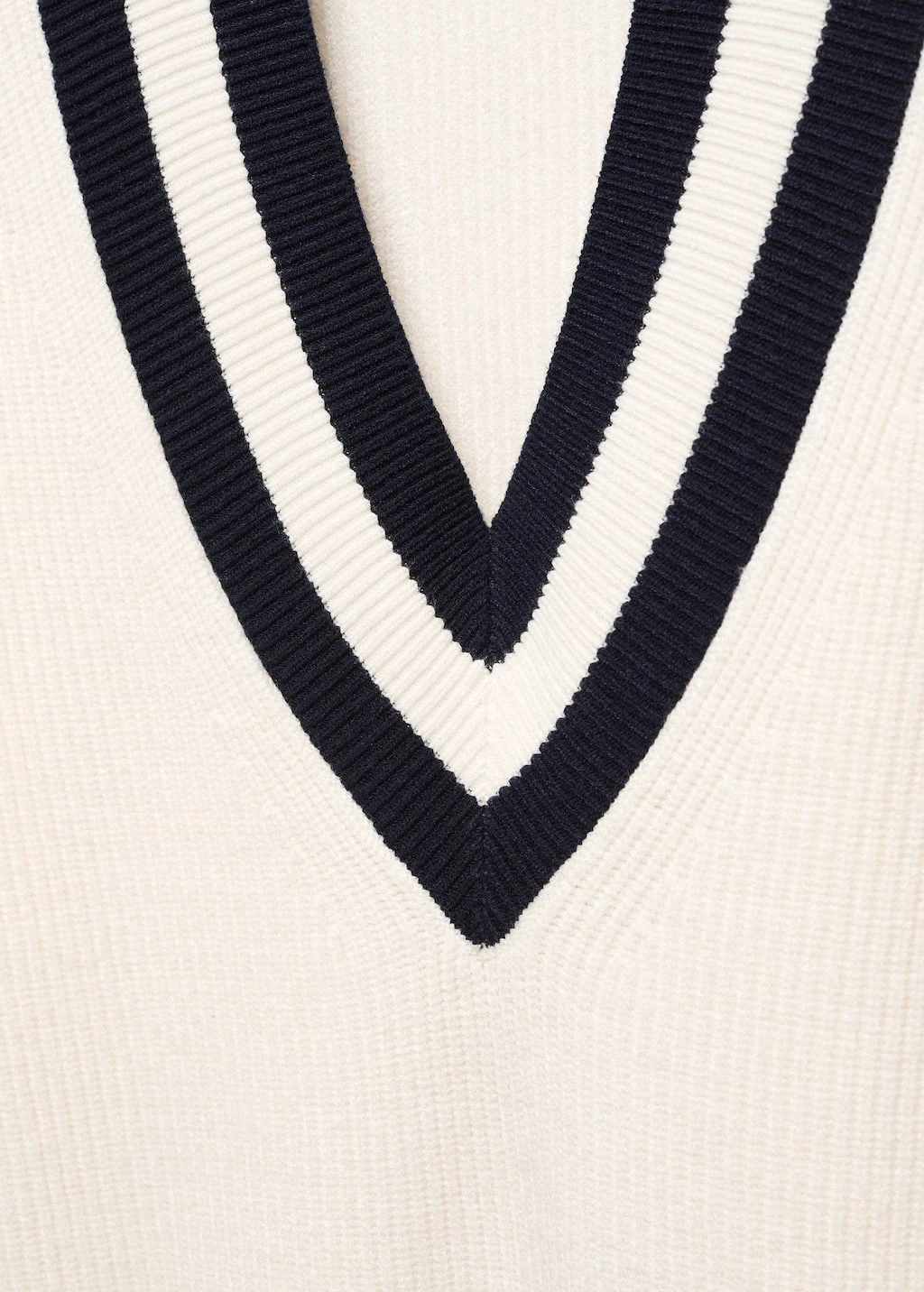 tissu en maille, droit, col en v contrastant, manches longues, bords coteles, bord contrastant, disponible plusComposition: 50% viscose,28% polyester,22% polyamide