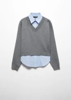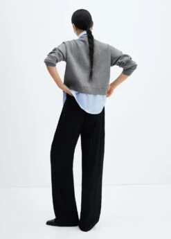 tissu de coton melange, tissu en maille fine, coupe droite, col chemise, col boutonne, manches longues, sans fermeture, bords coteles au niveau du col, des manches et sur le basComposition: 79% polyester,21% viscose. Interieur: 55% coton,45% polyester