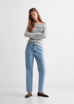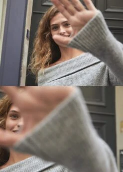 tissu en grosse maille, coupe droite, epaules denudees, manches longues, col bateau, sans fermetureComposition: 52% acrylique,45% polyester,3% elasthanne