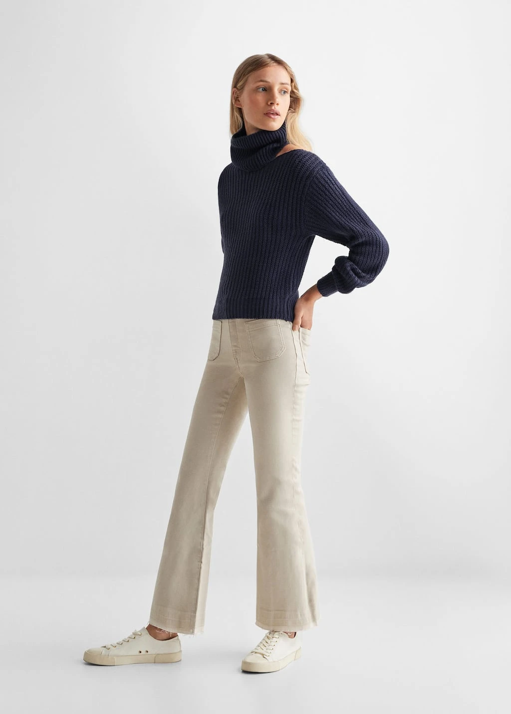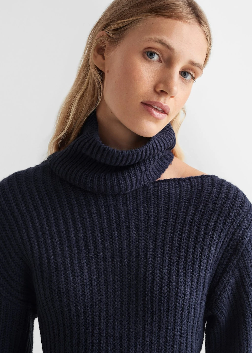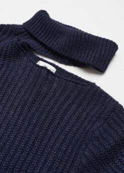 tissu en grosse maille, tissu cotele, col montant, col ouvert, manches longues bouffantesComposition: 100% acrylique