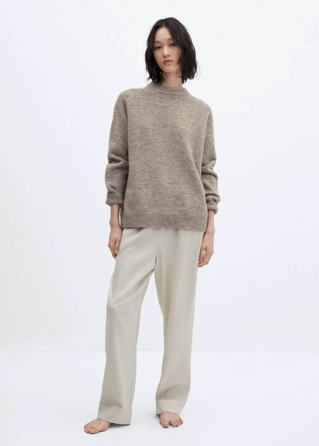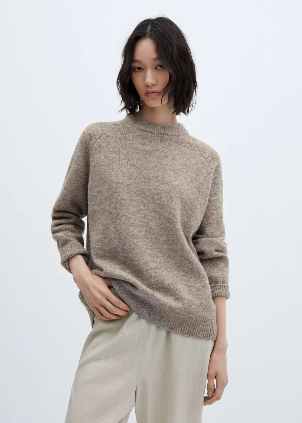 tissu de laine melange, coupe longue, droit, col rond, manches longues, sans fermeture, bords coteles au niveau du col, des manches et sur le basComposition: 50% polyester recyclé,29% polyester,13% acrylique,5% laine,3% elasthanne