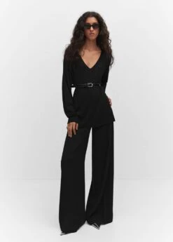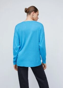 tissu en maille fine, droit, col en v, manches longues, bords coteles, fentes laterales, disponible plusComposition: 38% viscose,34% polyester,22% polyamide,6% cashmere