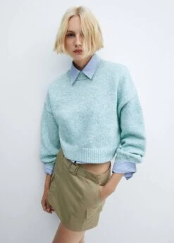 tissu en maille, style oversize, coupe courte, col montant, manches longues, couture tombante sur l’epaule, sans fermetureComposition: 50% polyester,50% acrylique