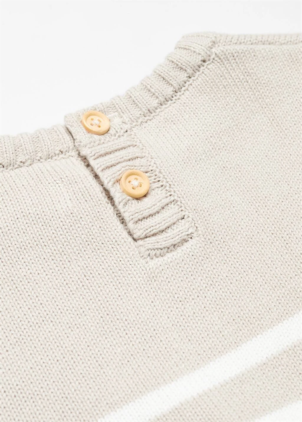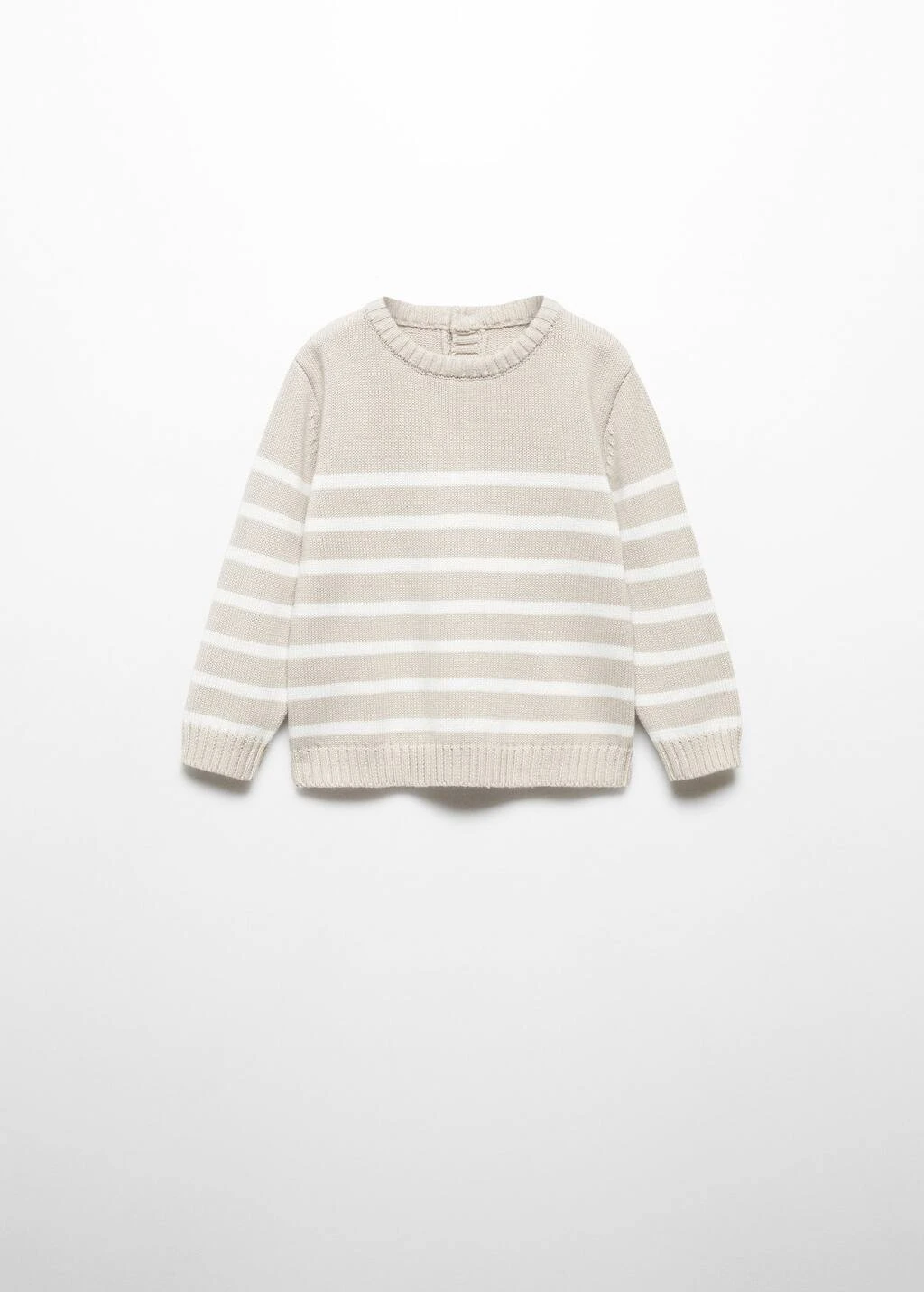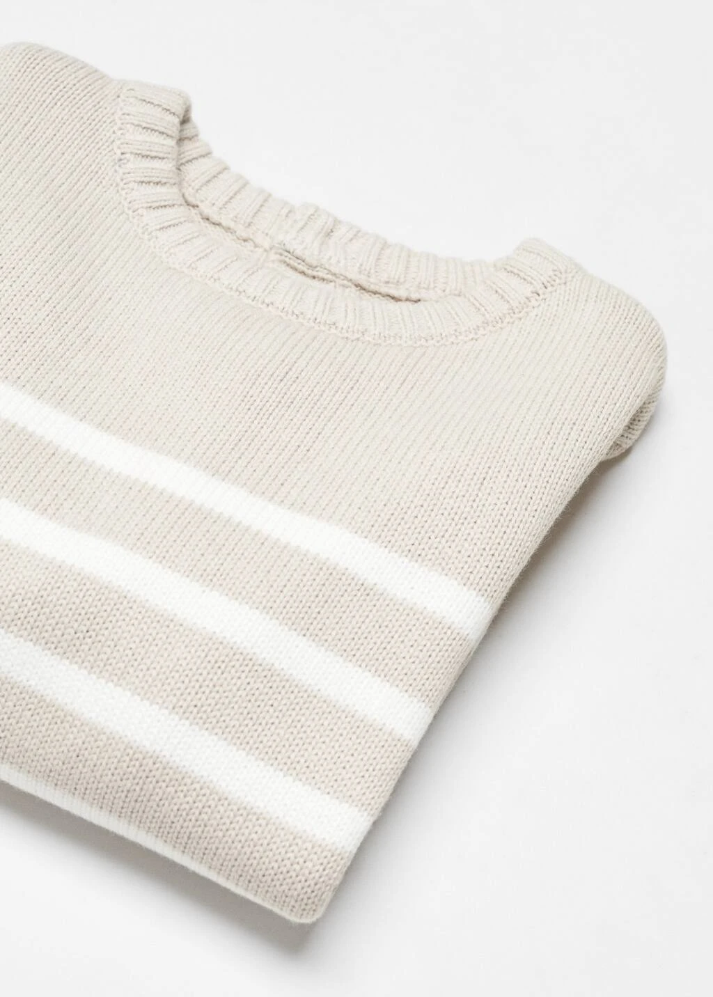 100 % coton, tissu en grosse maille, imprime rayures, coupe droite, col rond, manches longues, fermeture arriereComposition: 100% coton