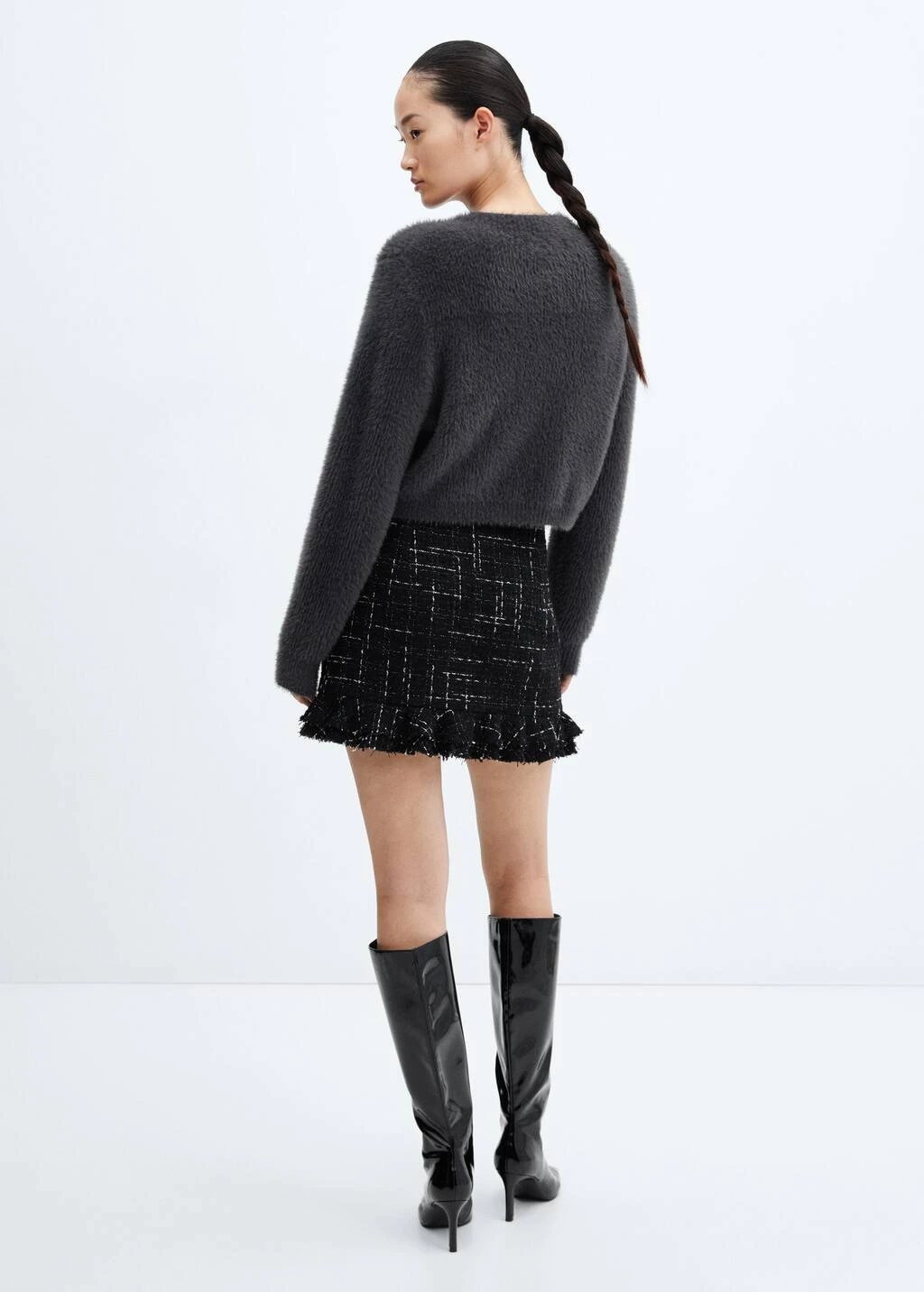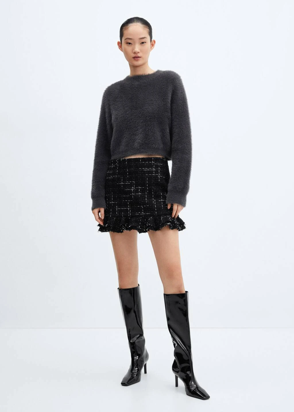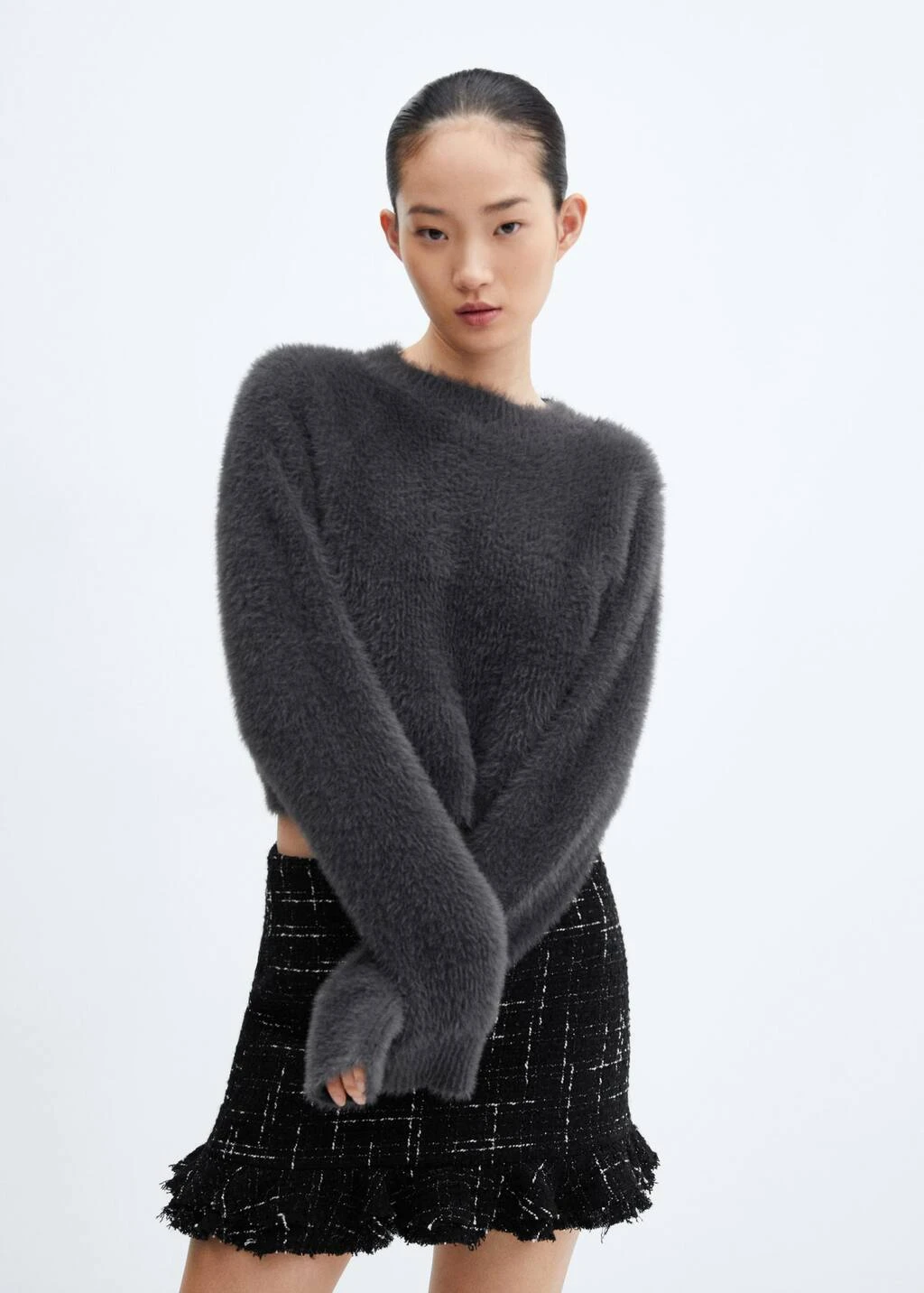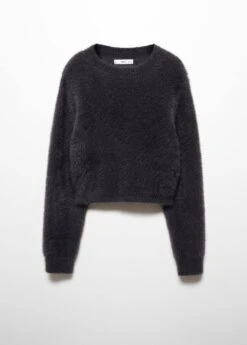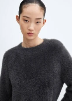 tissu en grosse maille, effet fourrure, coupe droite, coupe courte, col rond, manches longues, sans fermeture, bords coteles au niveau du col, des manches et sur le bas.Composition: 91% polyamide,6% viscose,3% polyester