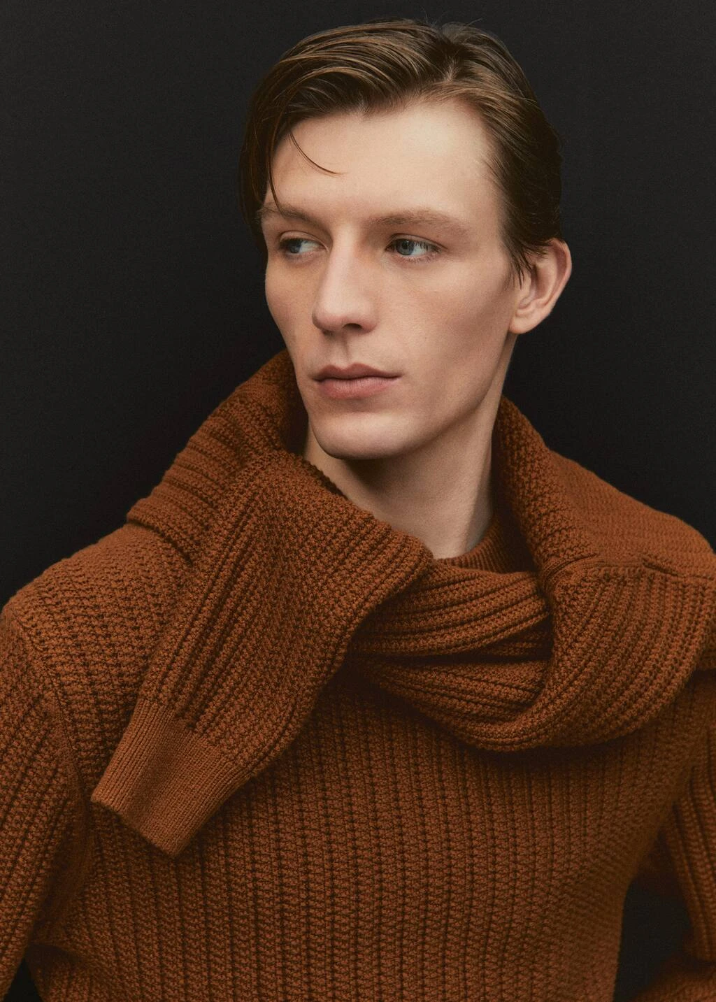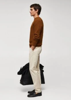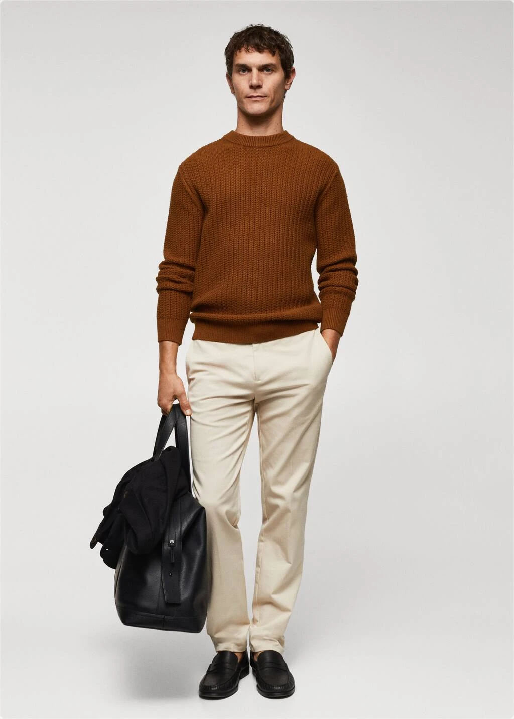 tissu en grosse maille, slim-fit, col rond, manches longues, bas droit, bords coteles au niveau du col, des manches et sur le bas, le mannequin mesure 190 cm et porte une taille mComposition: 53% viscose,26% polyester,21% polyamide