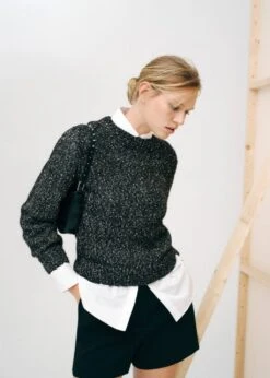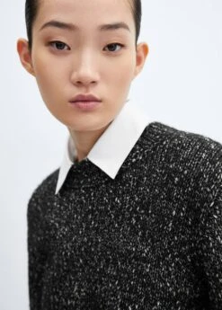 tissu lurex, tissu en grosse maille, coupe droite, col rond, manches longues, sans fermeture, bords cotelesComposition: 48% coton,33% acrylique,7% polyester avec revĂȘtement de cuivre,7% polyester,5% polyamide