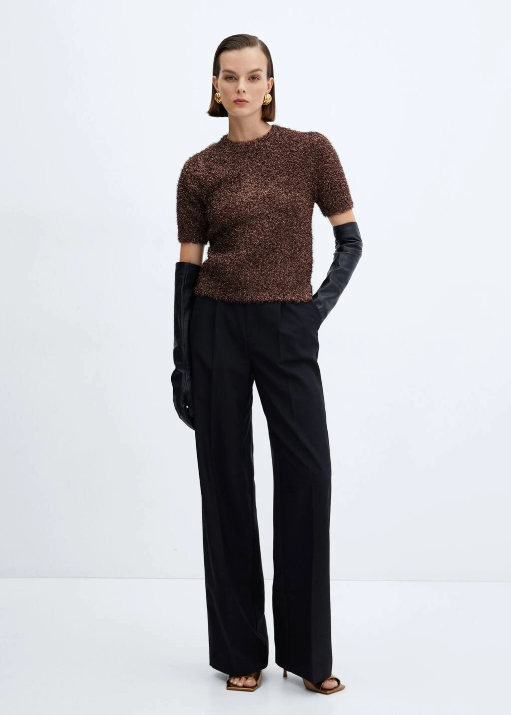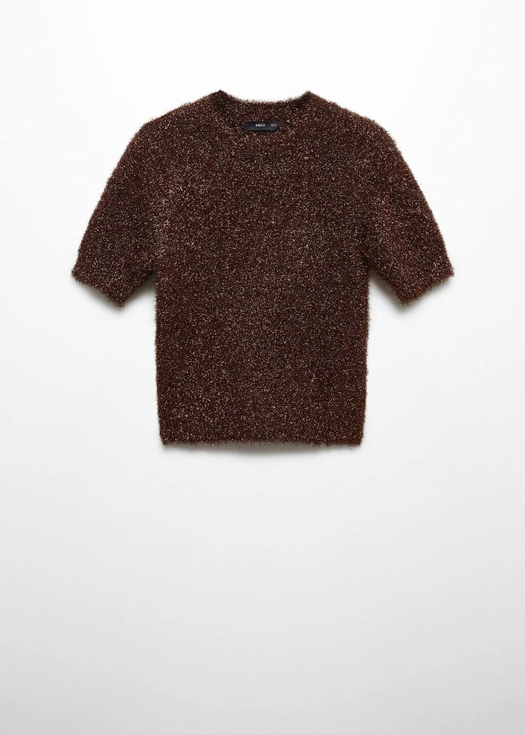 tissu lurex, tissu en grosse maille, coupe droite, col rond, manches courtes, sans fermeture, collection fetes et ceremoniesComposition: 100% polyester