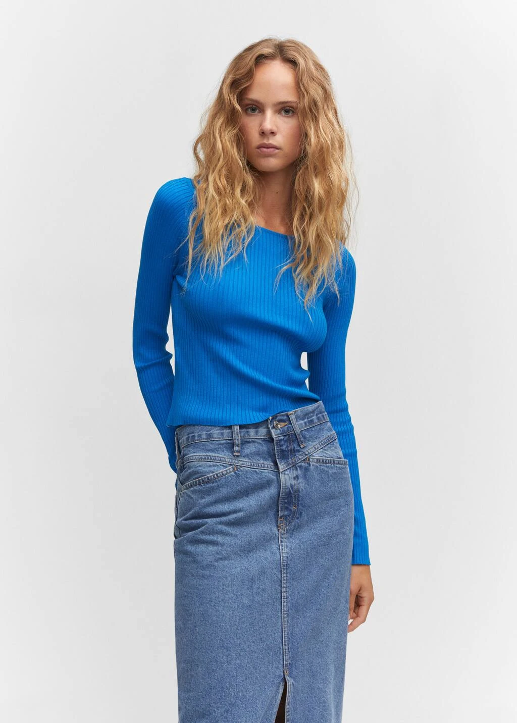 tissu en maille fine, tissu en maille cotelee, ajuste, col rond, manches longuesComposition: 72% viscose,28% polyamide