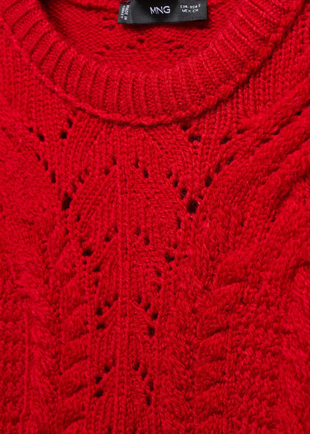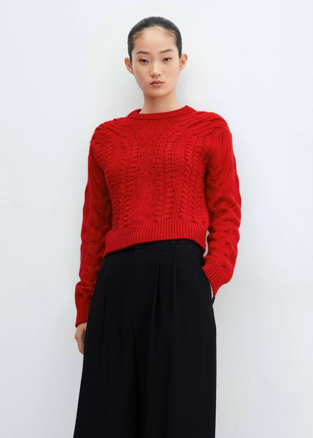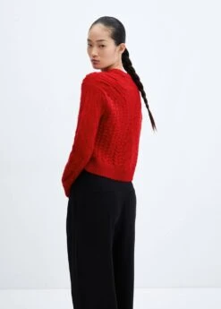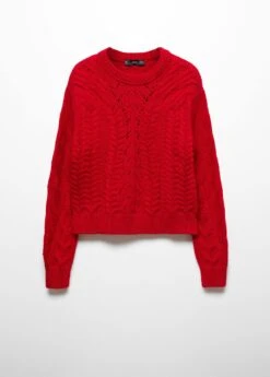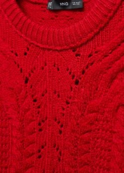 tissu en maille, tissu maille torsadee, coupe droite, col rond, manches longues, sans fermeture, details ajouresComposition: 85% acrylique,9% polyamide,6% polyester