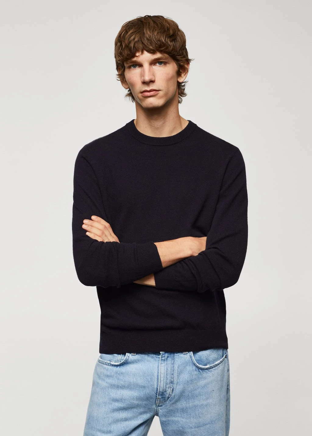 les essentiels : concus pour durer, regular-fit, tissu en maille fine, col rond, manches longues, bas droit, bords coteles au niveau du col, des manches et sur le bas, les couleurs bleu ciel et gris clair sont des exclusivites en ligneComposition: 53% polyamide,43% laine,4% cashmere
