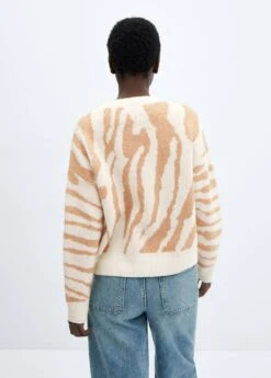 tissu de laine melange, tissu en grosse maille, coupe droite, imprime animal, col rond, manches longues, sans fermeture, bords coteles au niveau du col, des manches et sur le bas.Composition: 79% polyester,13% acrylique,5% laine,3% elasthanne