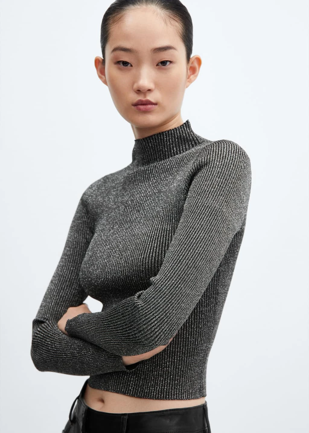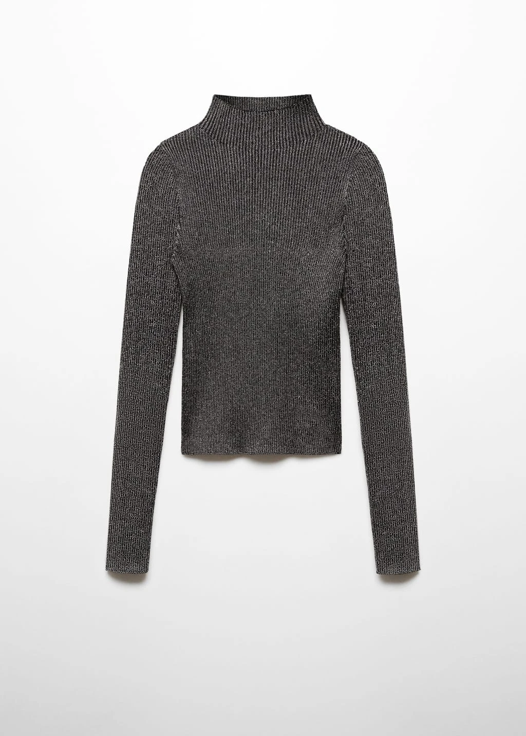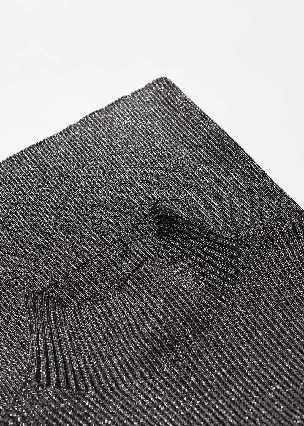 tissu lurex, tissu en maille fine, ajuste, col montant, manches longues, collection fetes et ceremonies.Composition: 100% polyester