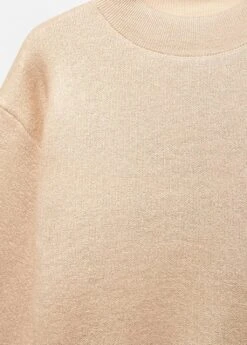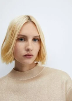 tissu en maille fine, droit, finition metallisee, col rond, manches longues, sans fermeture, bords coteles au niveau du col, des manches et sur le bas.Composition: 45% viscose,34% polyester,21% polyamide