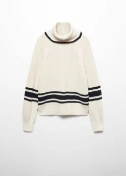 maille moyenne, droit, imprime rayures, col roule, manches longues, bords cotelesComposition: 100% acrylique