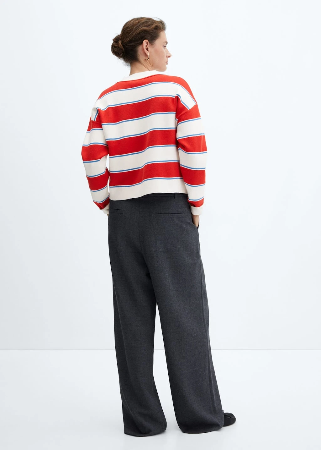tissu en maille fluide, droit, longueur normale, motif raye, col montant, manches longues, sans fermetureComposition: 51% polyester,35% viscose,14% polyamide
