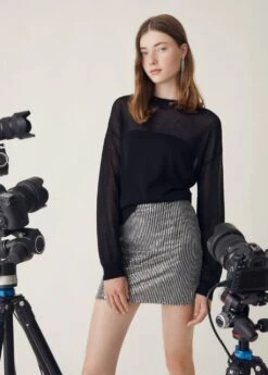 design transparent, coupe droite, col rond, sans fermeture, manches longuesComposition: 89% viscose,11% polyamide
