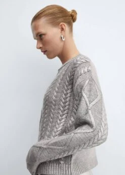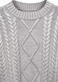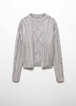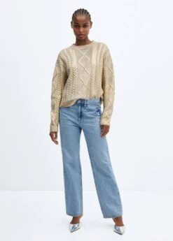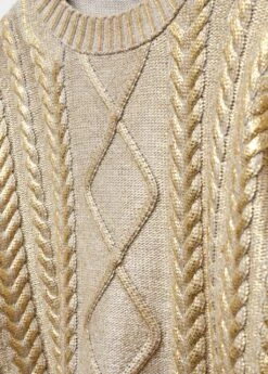 maille moyenne, maille torsadee, coupe droite, finition metallisee, col rond, manches longues, sans fermeture, bords coteles au niveau du col, des manches et sur le basComposition: 100% acrylique