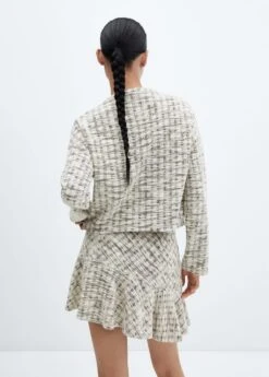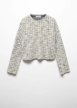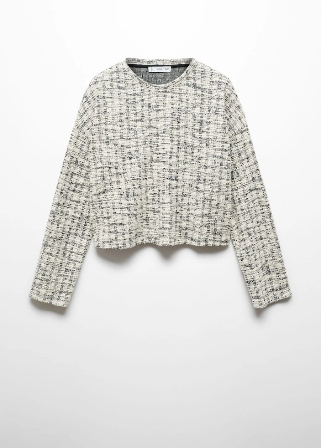 tissu de coton melange, tissu tweed, coupe courte, imprime jaspe, col rond, manches longues, total lookComposition: 55% polyester,45% coton. Lisiere: 100% viscose
