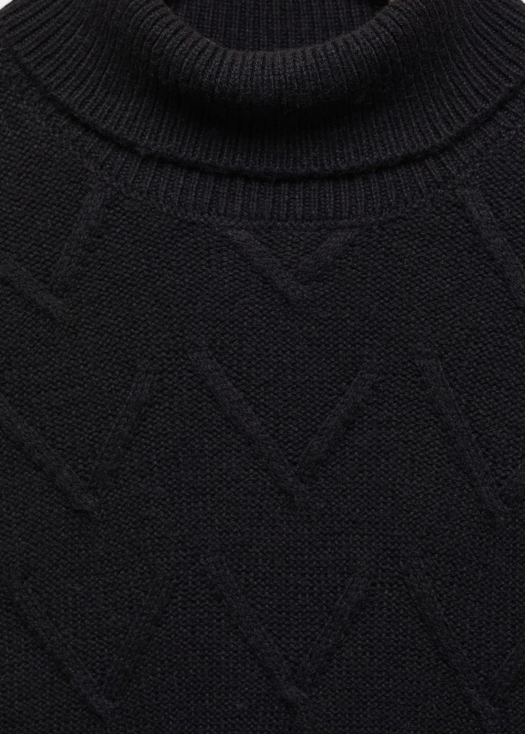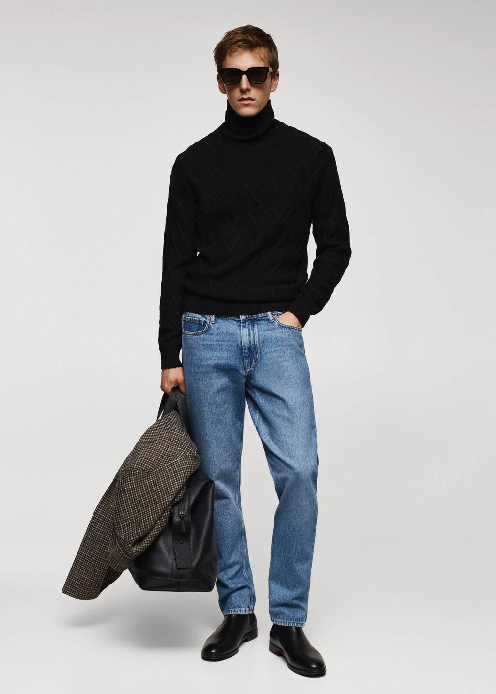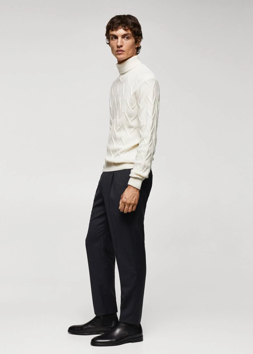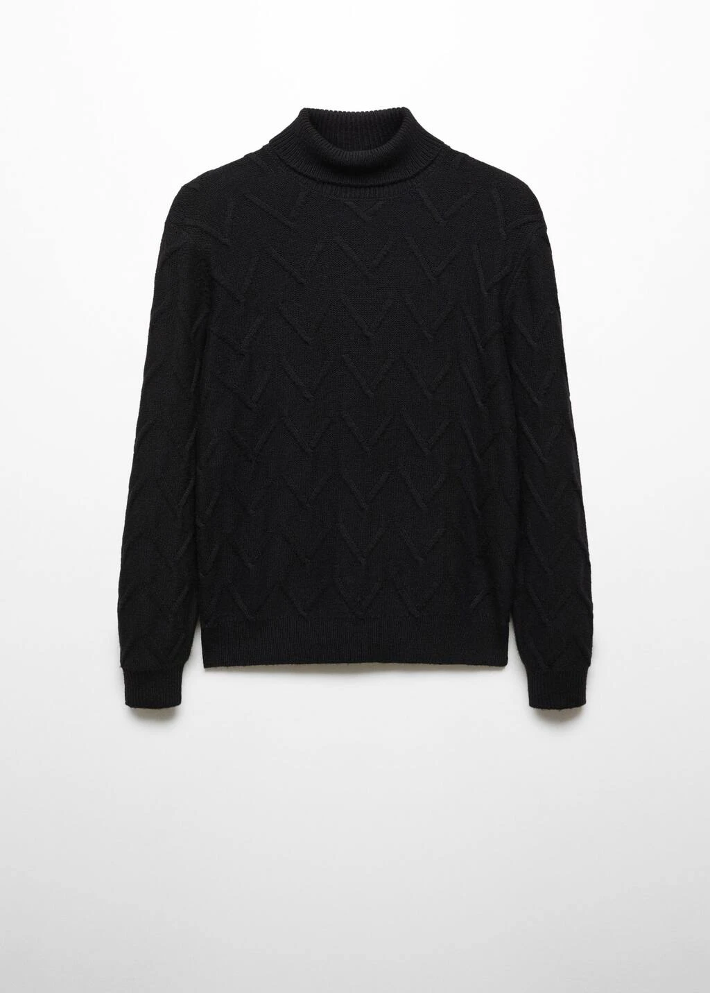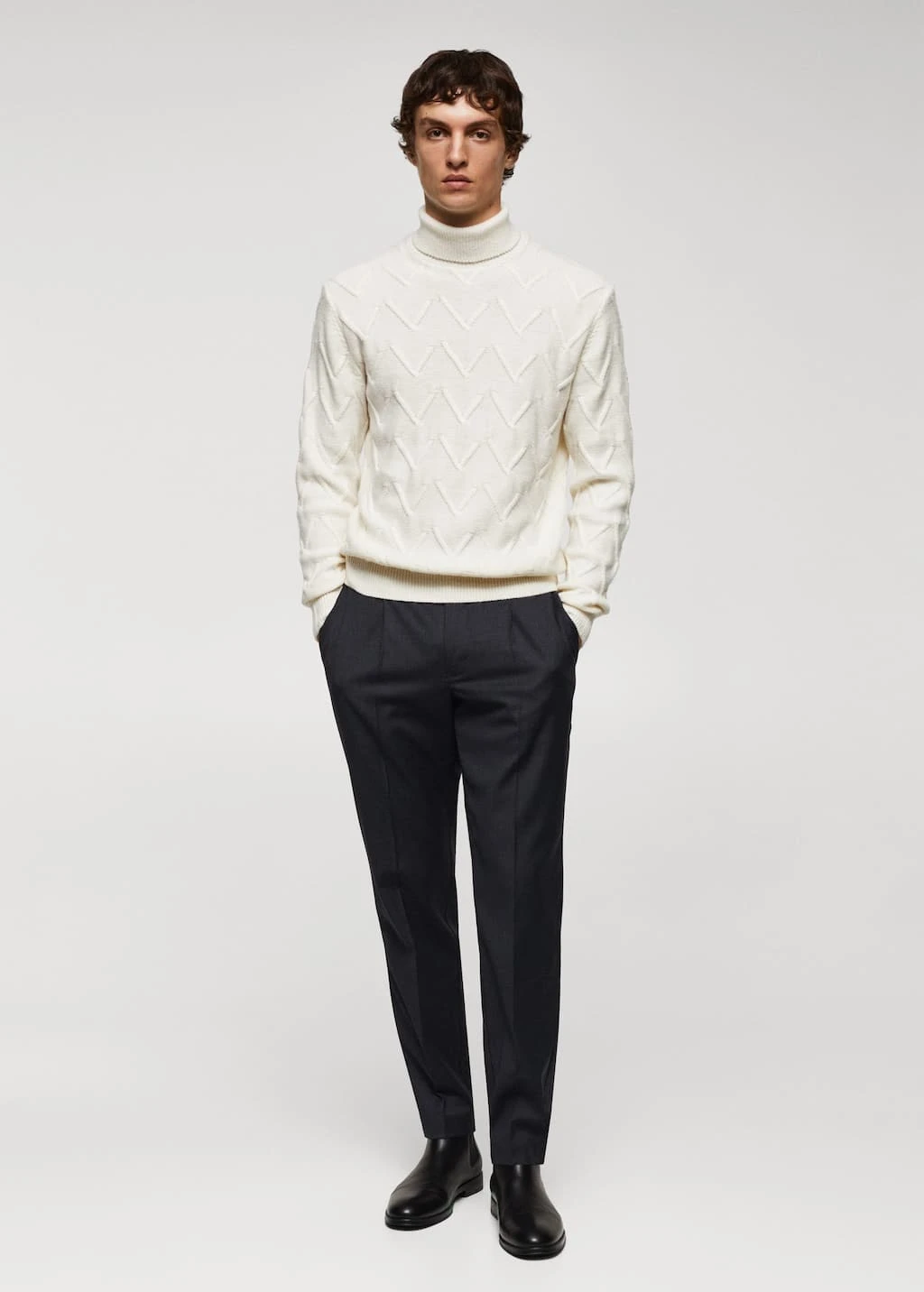 tissu de laine melange, maille moyenne, regular-fit, col montant, manches longues avec poignets elastiques, bas droit, bords coteles contrastes au niveau du col, des manches et sur le bas, le mannequin mesure 190 cm et porte une taille mComposition: 58% polyamide,42% laine