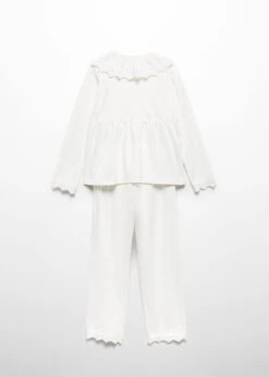pack t-shirt et pantalon de pyjama, details brodes, coupe droite, coupe longue, taille elastique, col claudine, manches longues, fermeture boutonnee, fermeture a cordonComposition: 100% coton