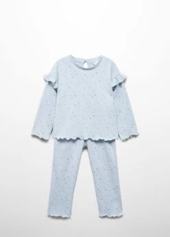 pack t-shirt et pantalon de pyjama, imprime etoiles, coupe longue, manches a volants, col rond, manches longues, fermeture a boutonComposition: 100% coton. Pantalon: 100% coton
