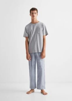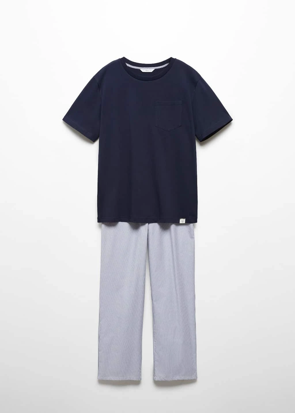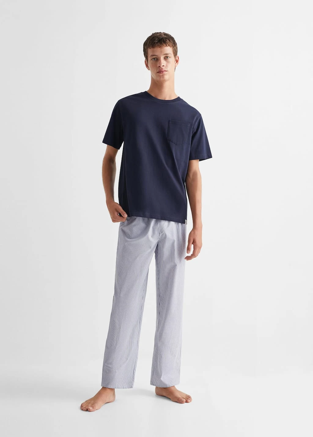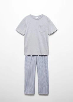 pack t-shirt et pantalon de pyjama, 100 % coton, imprime rayures, coupe droite, coupe longue, col rond, poche sur la poitrine, manches longuesComposition: 100% coton. Pantalon: 60% coton,40% polyester