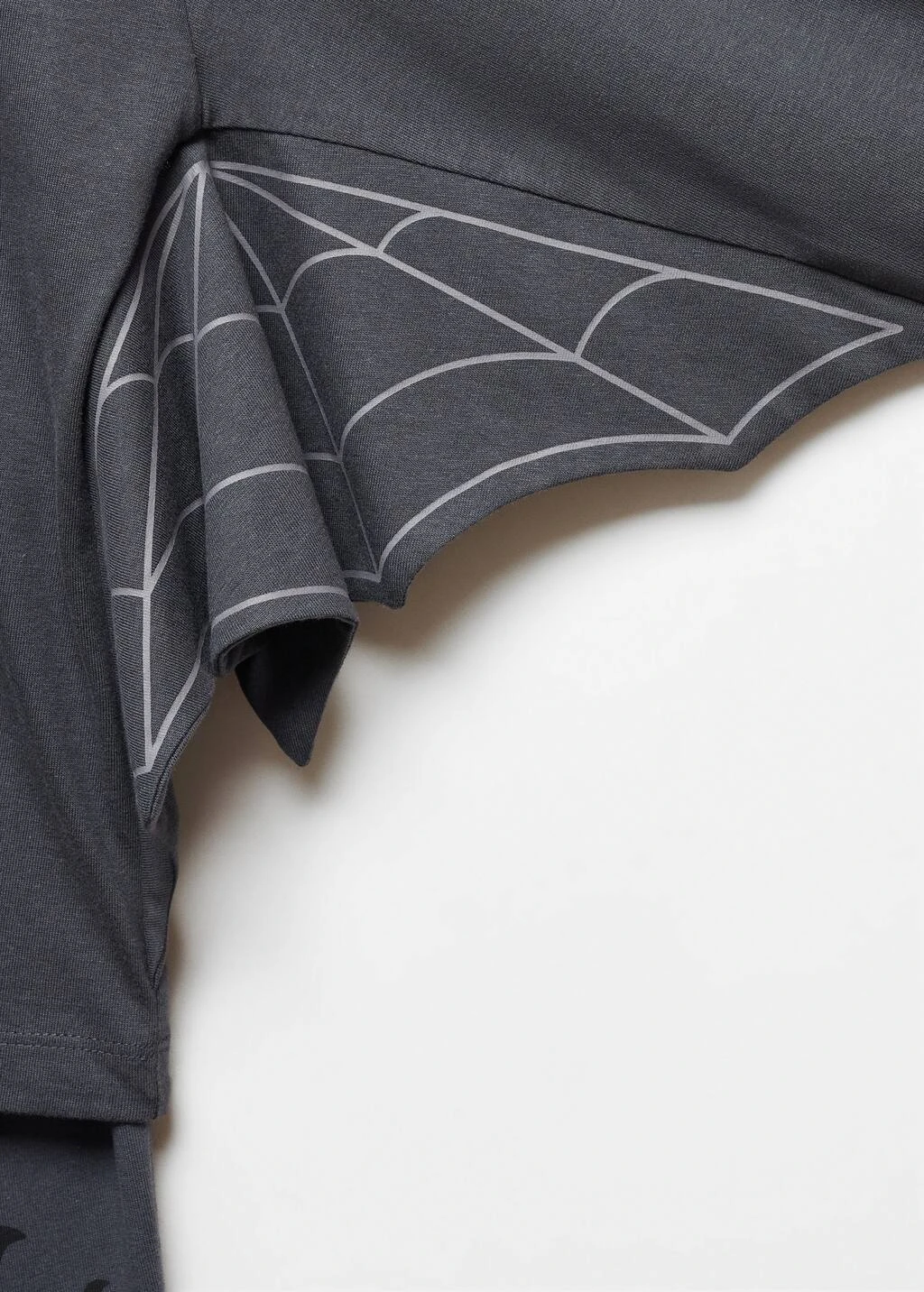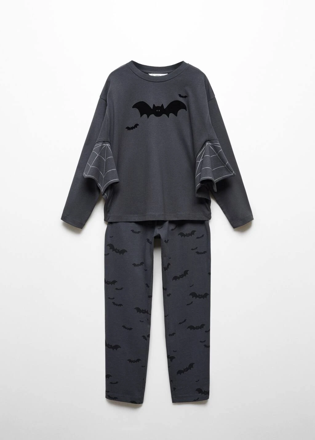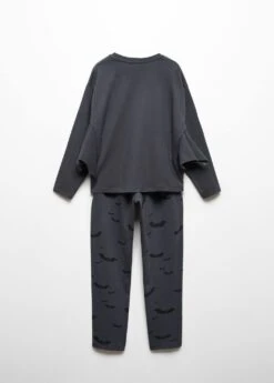 100 % coton, unisexe, coupe longue, motif anime, motif chauve-souris, col rond, manches longues, collection halloween, fermeture a cordonComposition: 100% coton. Pantalon: 100% coton