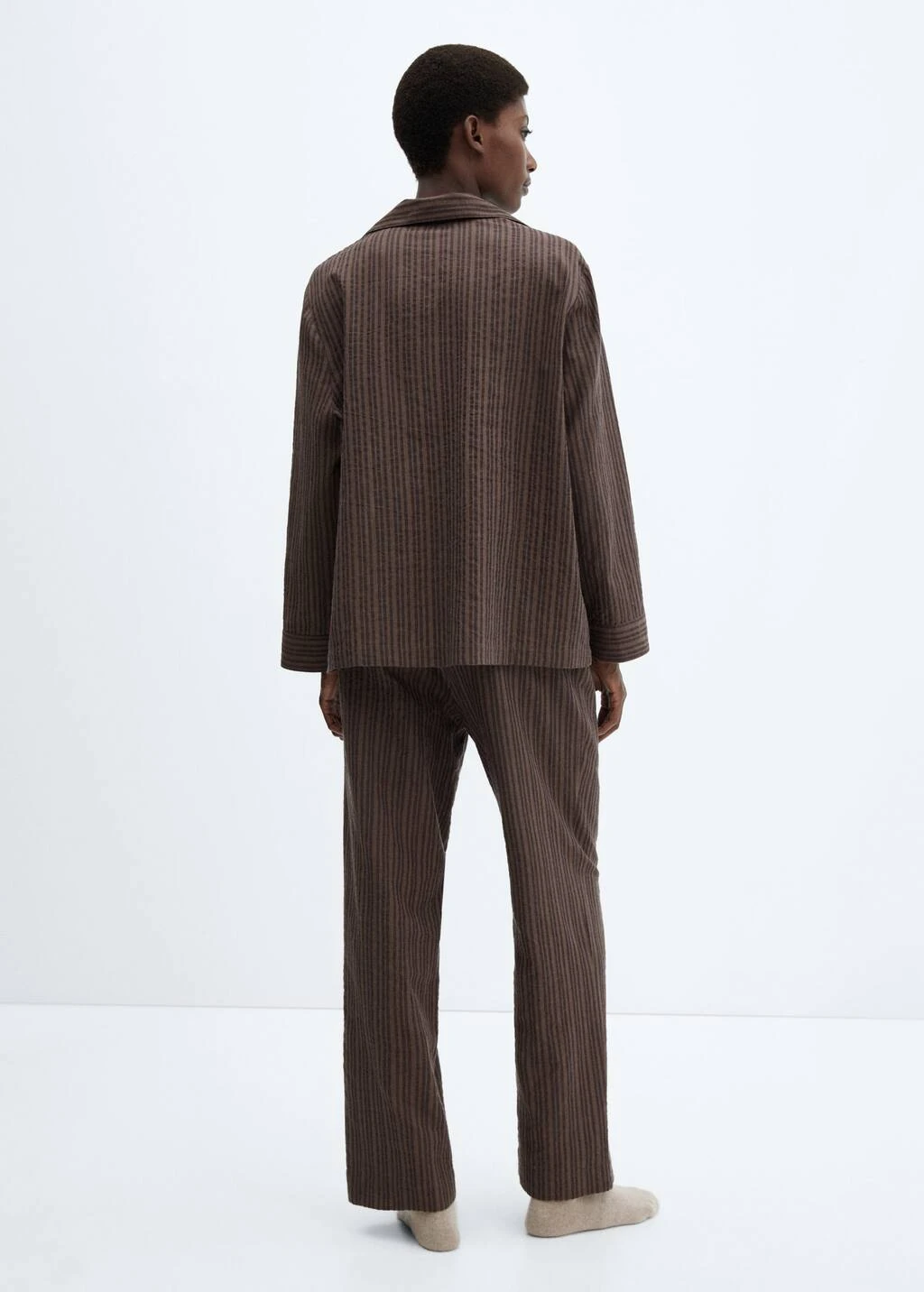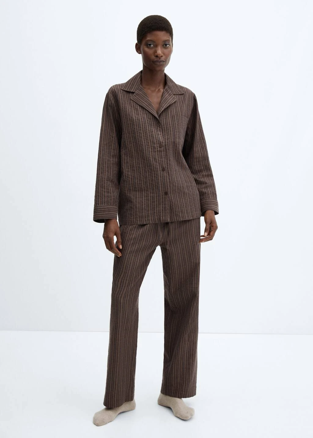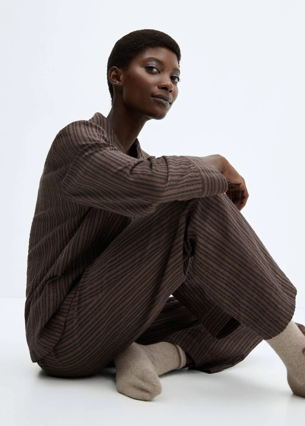 100 % coton, droit, coupe longue, taille normale, imprime rayures, col en v avec rabat, manches longues, poche plaquee sur la poitrine, fermeture a boutons sur le devant, taille elastique avec fermeture a nœudComposition: 100% coton
