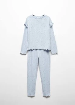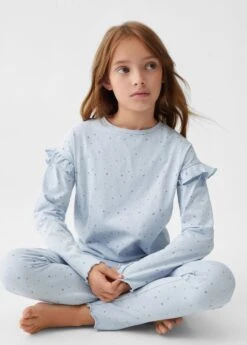 pack t-shirt et pantalon de pyjama, 100 % coton, coupe longue, coupe droite, details volantes, imprime etoiles, col rond, manches longuesComposition: 100% coton. Pantalon: 100% coton