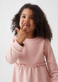 100 % coton, col rond, evase, coupe courte, manches longues, detail volanteComposition: 100% coton