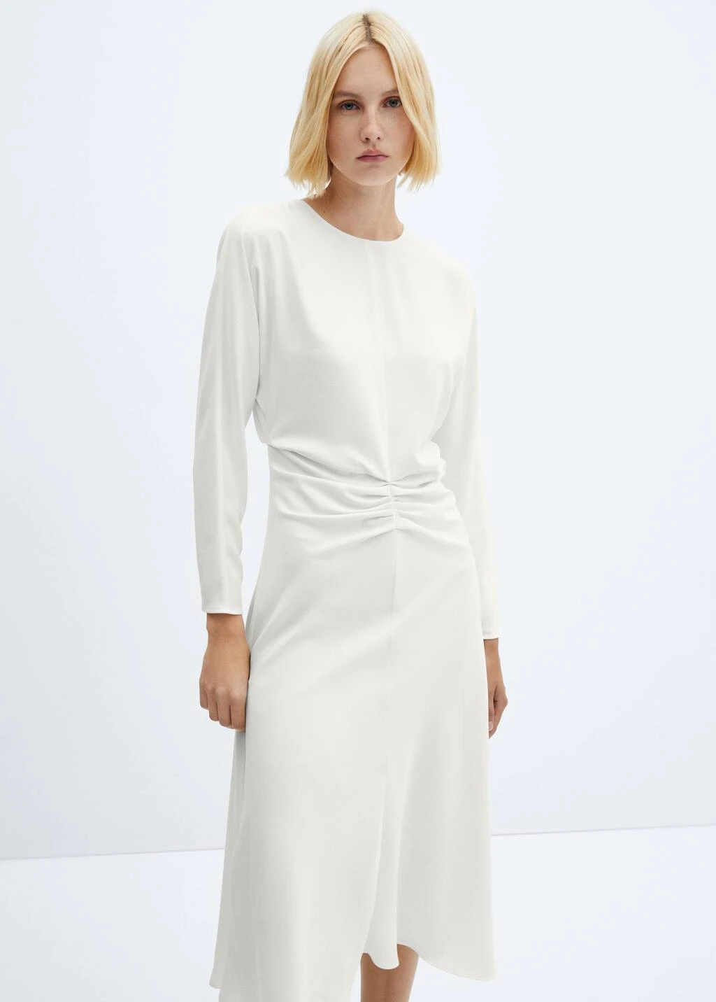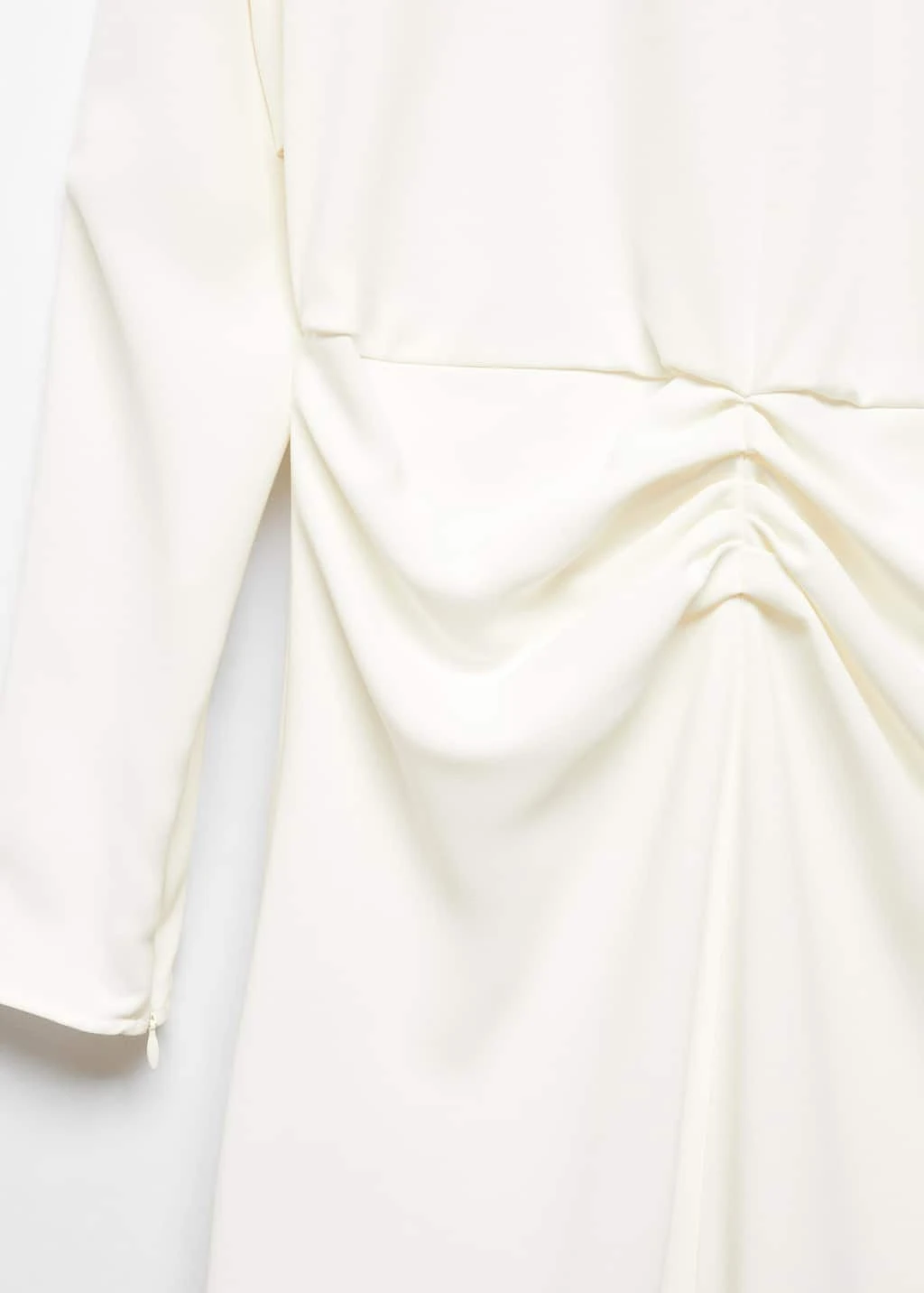 tissu fluide, coupe midi, evase, col rond, manches longues, zip, fermeture boutonnee a l’arriere, fermeture eclair invisible a l’arriere, detail fronce, doublure.Composition: 100% polyester. Doublure: 100% polyester