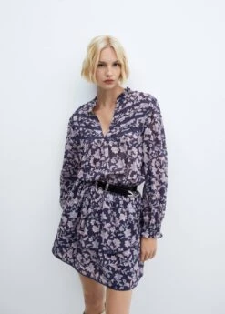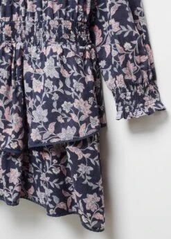 tissu 100 % coton, droit, coupe courte, imprime floral, col en v, manches longues bouffantes, poignets elastiques, fronce elastique a la taille, sans fermetureComposition: 100% coton. Doublure: 100% coton. Dentelle: 100% coton