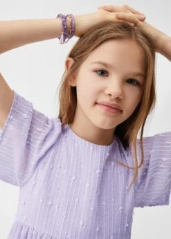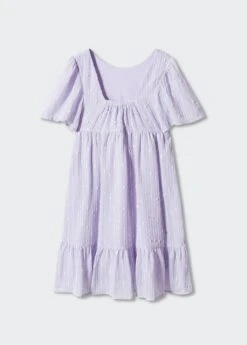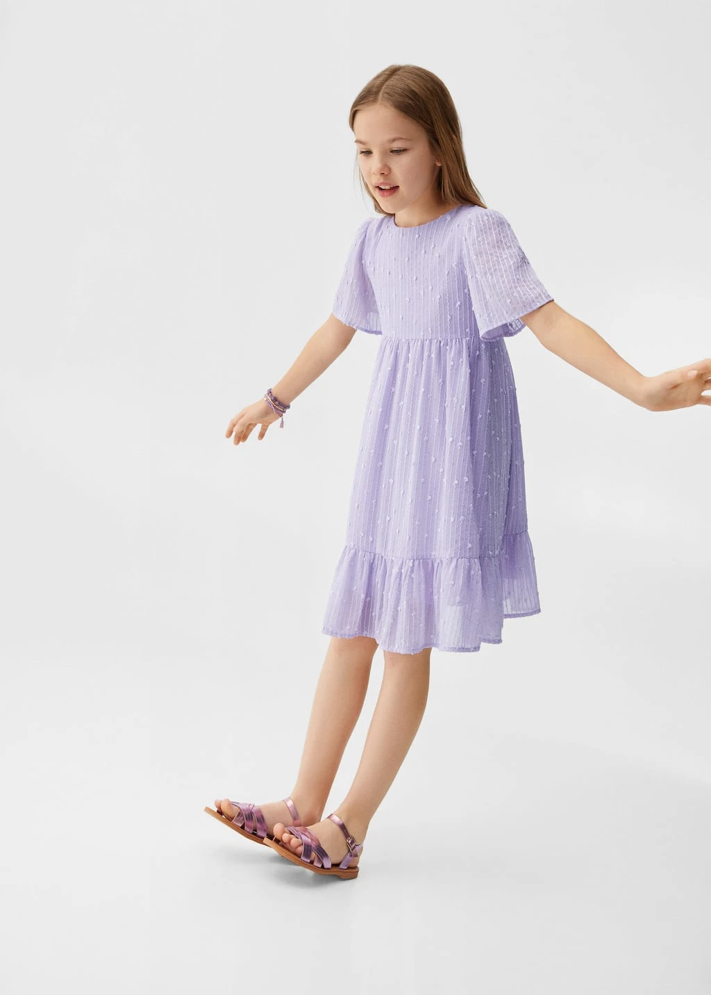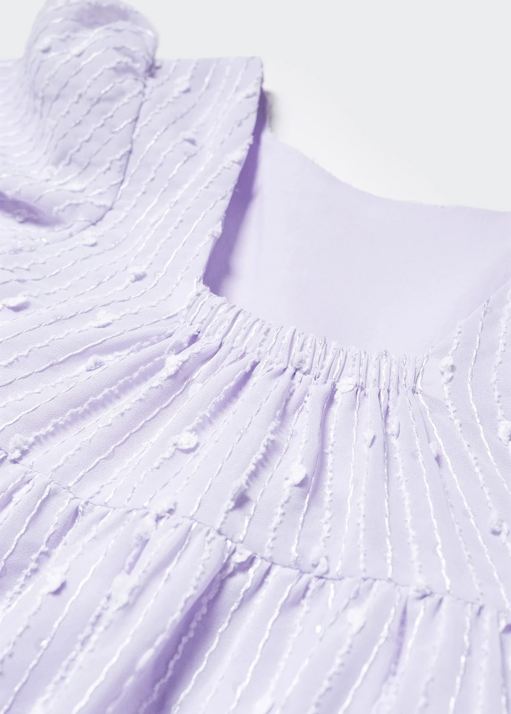 tissu brode, coupe droite, coupe courte, col droit, manches courtes, detail fronce, detail volante, details brodes, fermeture boutonnee, doublureCOMPOSITION:100% POLYESTER. DOUBLURE:100% COTON
