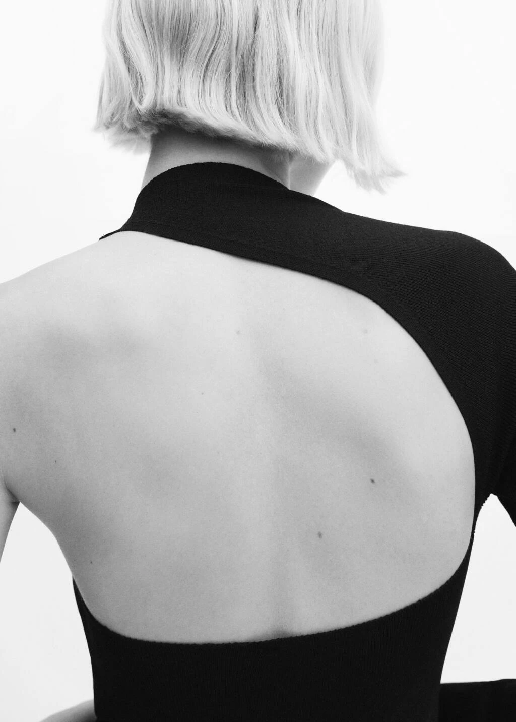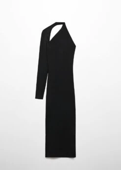 tissu en maille fine, coupe longue, coupe cintree, coupe asymetrique, epaules denudees, manches longues, sans fermeture, fente lateraleComposition: 99% polyester,1% elasthanne