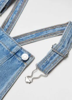 tissu en coton de style jean, coupe courte, bretelles larges, deux poches a rabat, col droit, sans manches, fermeture boutonneeComposition: 100% coton