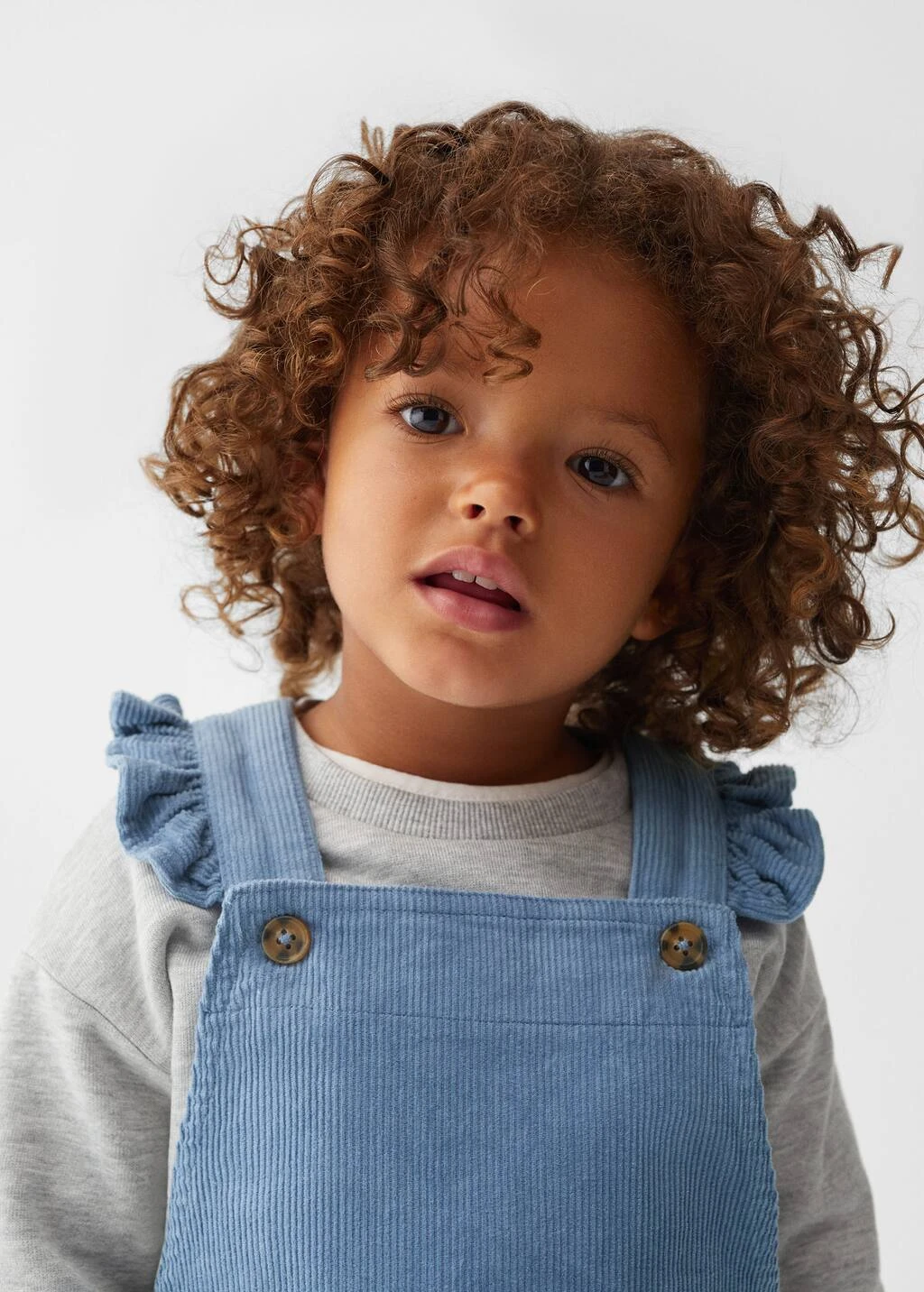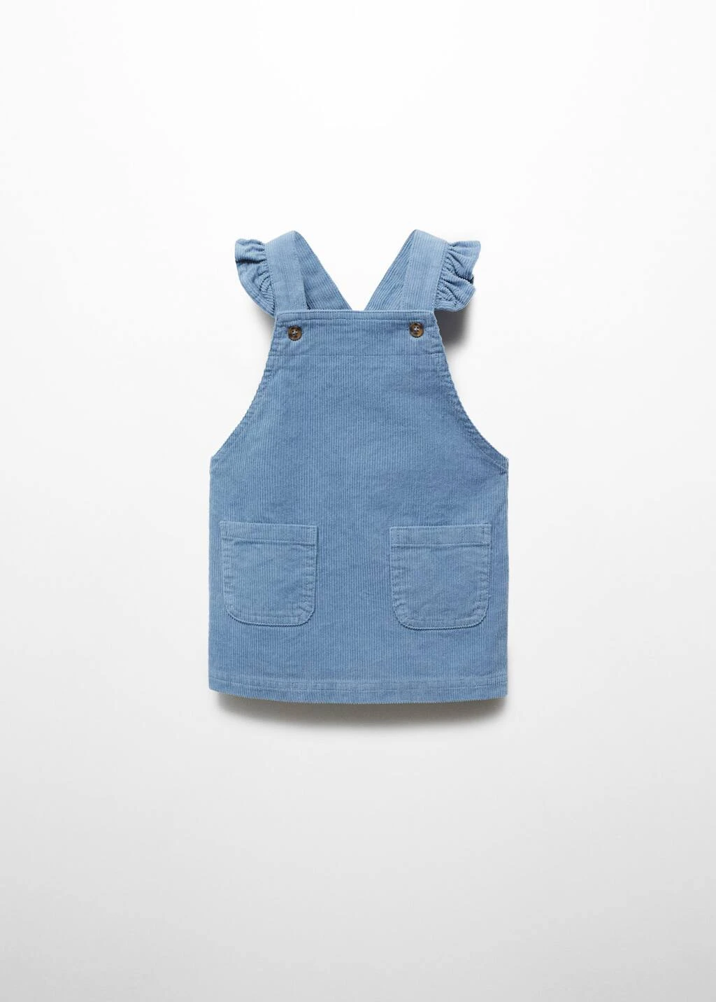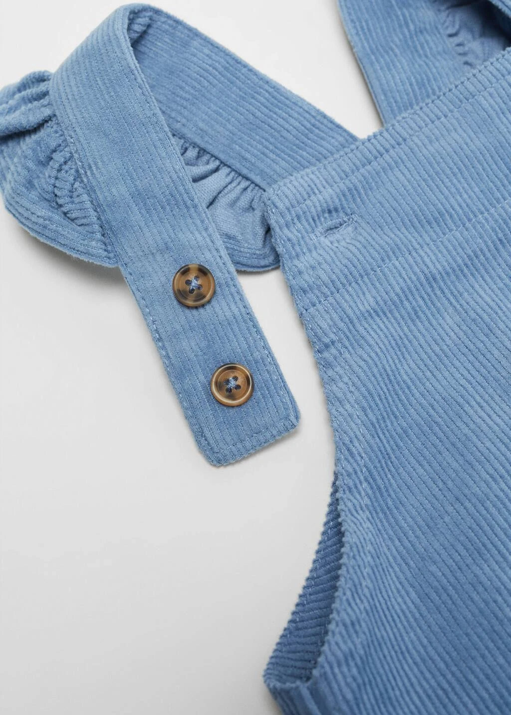 100 % coton, tissu en velours cotele, coupe courte, coupe droite, bretelles larges, bretelles a volant, deux poches avant, fermeture boutonneeComposition: 100% coton