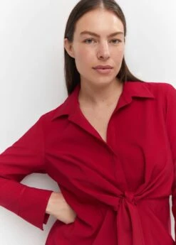 tissu fluide, style chemisier, droit, coupe courte, col chemise, manches longues boutonnees, fermeture boutonnee sur le devant, detail nœud, disponible plusComposition: 93% viscose,7% polyester