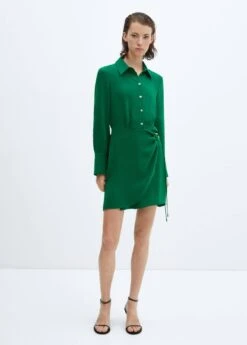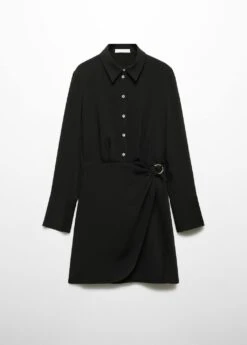 tissu fluide, coupe courte, coupe droite, col chemise, manches longues avec poignets boutonnes, fermeture a boutons sur le devant, anneaux metalliques decoratifsComposition: 100% polyester. Lisiere: 100% polyester