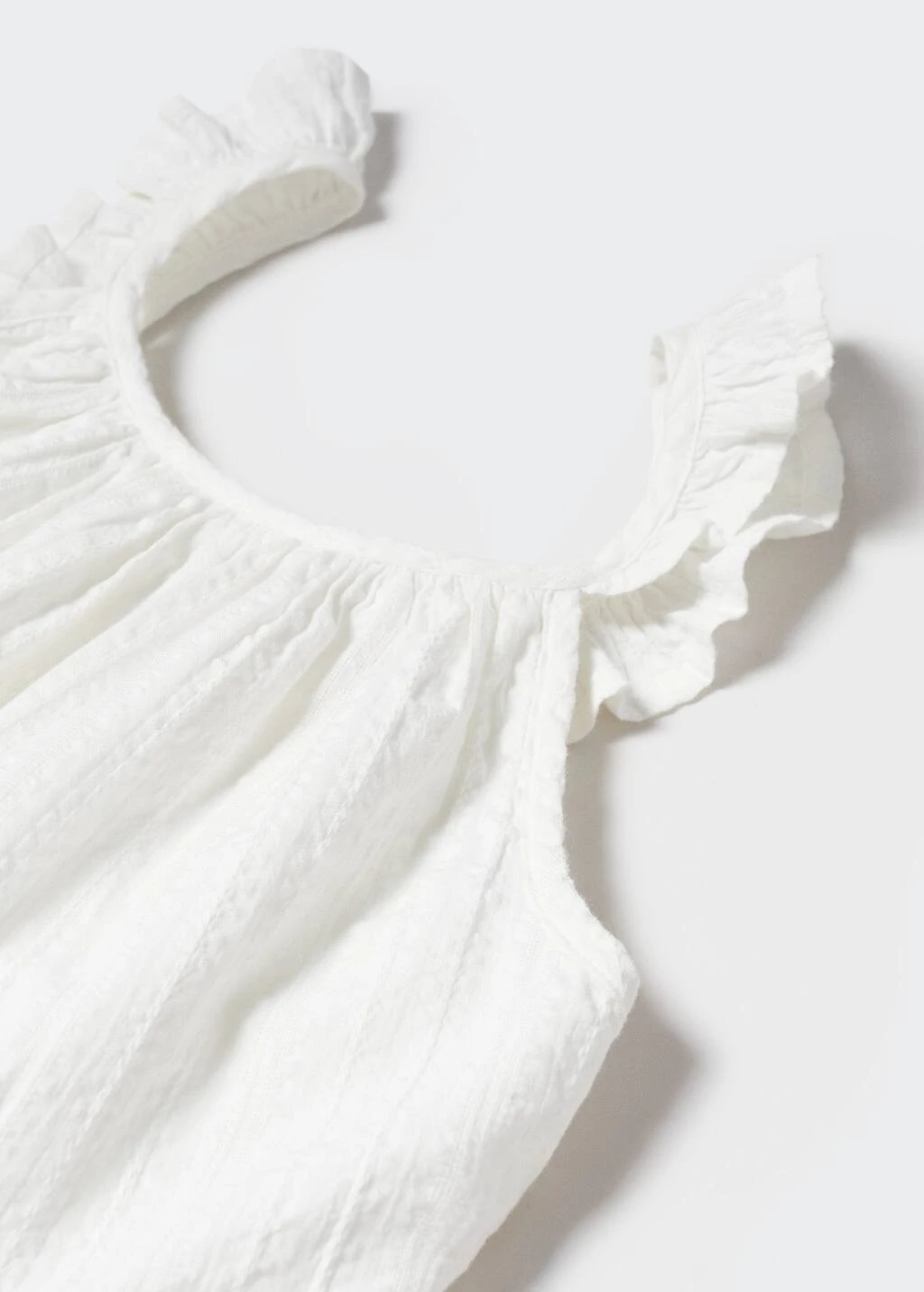 100 % coton, coupe longue, texture, elastique pour cheveux, base volantee, bretelles a volant, col rond, sans fermeture, sans manchesComposition: 100% coton. Doublure: 100% coton