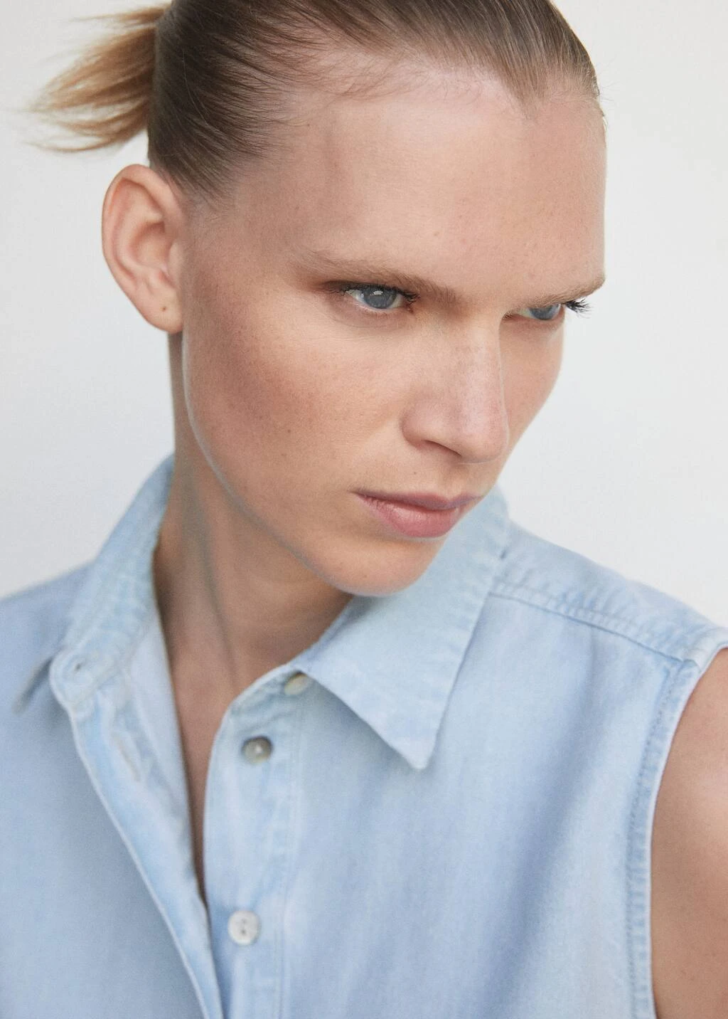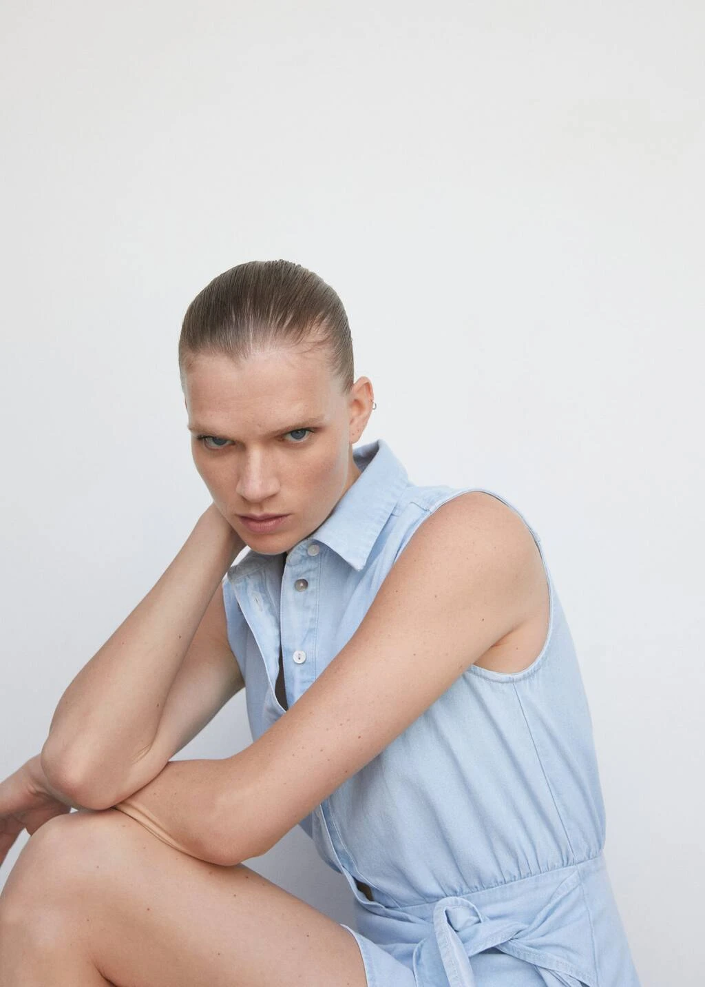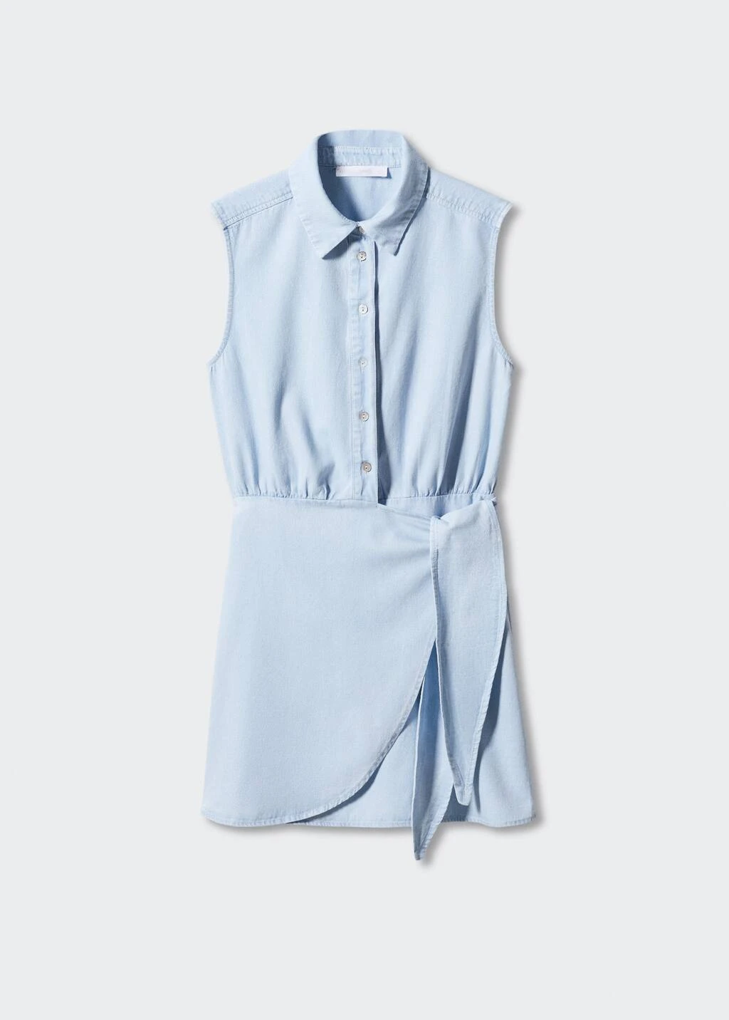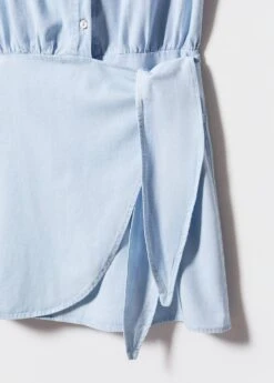 tissu 100 % coton, coupe droite, croise, coupe courte, col chemise, sans manches, ceinture a nouer a la taille, fermeture boutonnee sur le devantComposition: 100% coton