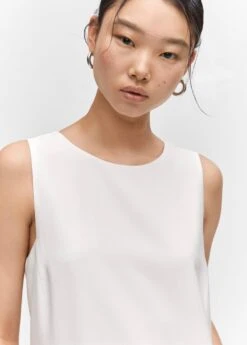 tissu fluide, coupe droite, coupe courte, col rond, sans manches, fermeture eclair a l’arriere, doublure, la couleur blanche est une exclusivite en ligneComposition: 93% viscose,7% polyester. Doublure: 100% viscose