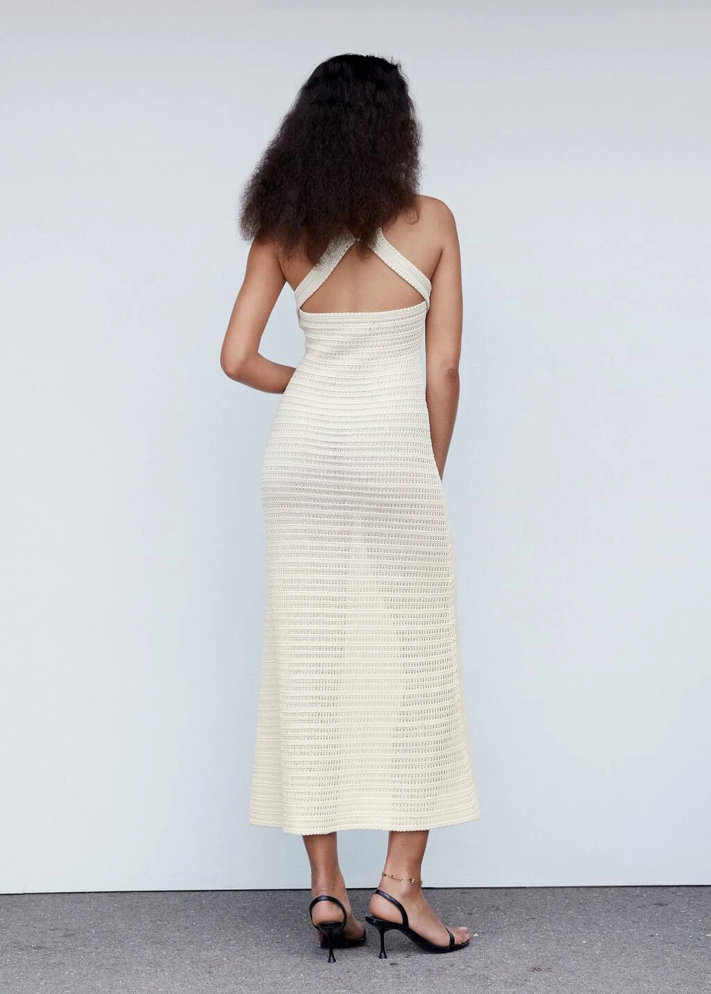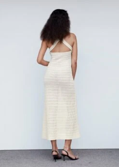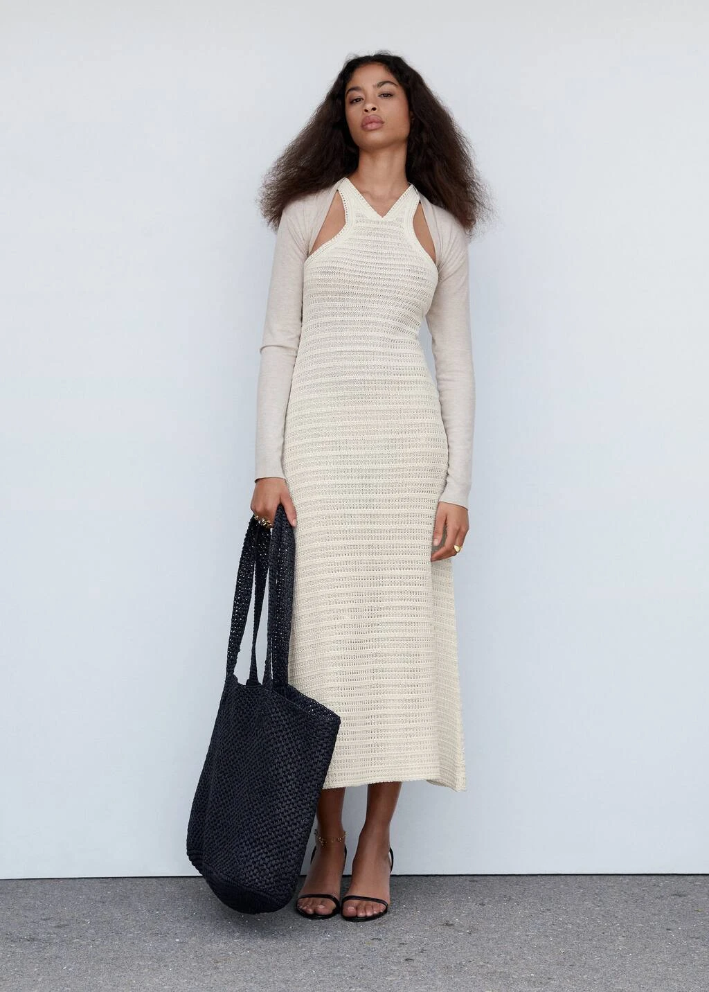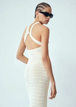 tissu de coton melange, tissu en crochet, coupe cintree, coupe longue, emmanchures americaines, bretelles larges, encolure au dos, bouton de fermeture a l’arriereComposition: 70% coton,30% polyamide
