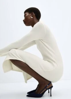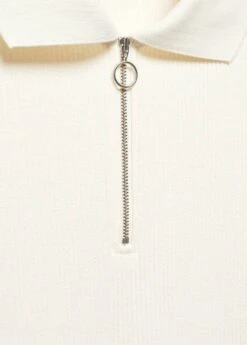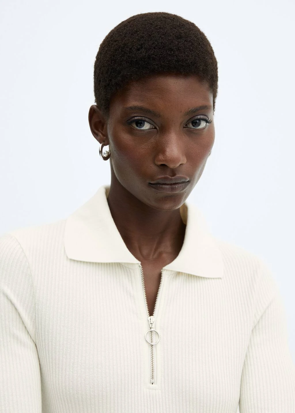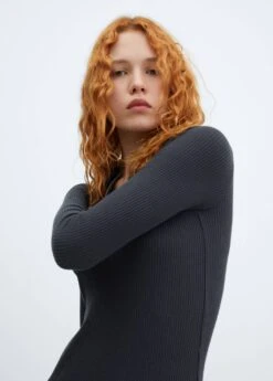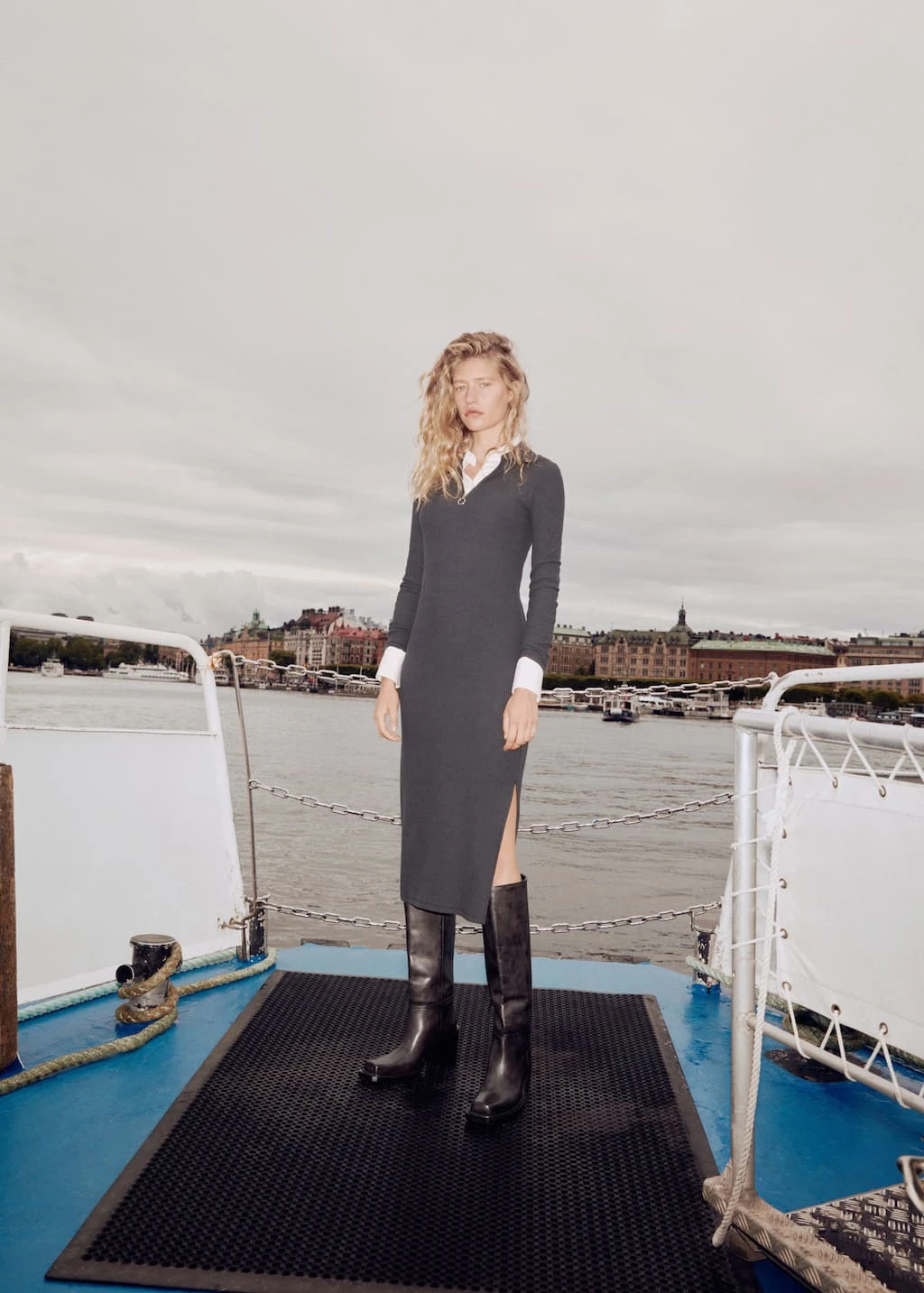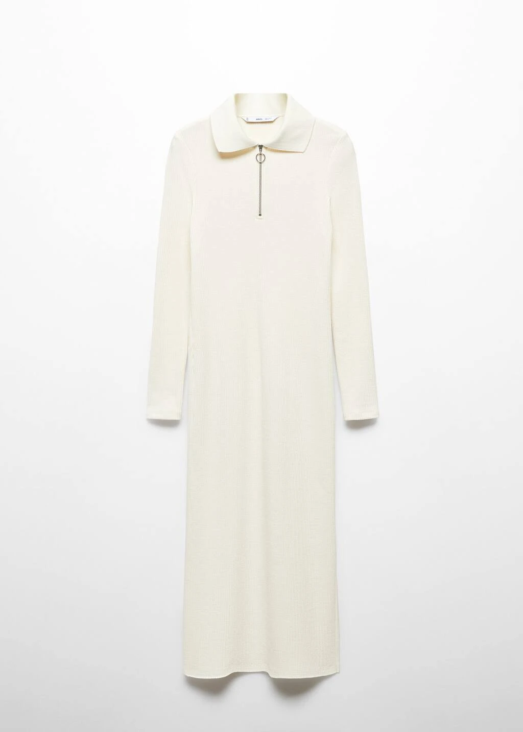tissu en maille fine, coupe midi, ajuste, cotele, col polo a fermeture eclair, manches longues, sans fermeture, fente lateraleComposition: 52% polyester,44% coton,4% elasthanne. Col: 100% coton. Lisiere: 97% viscose,3% elasthanne