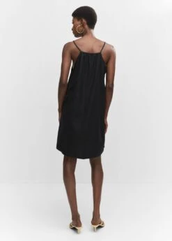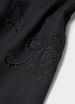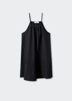 tissu de coton et lin melange, droit, coupe courte, emmanchures americaines, bretelles fines, sans fermeture, details brodesComposition: 46% viscose,41% coton,13% lin. Doublure: 100% coton