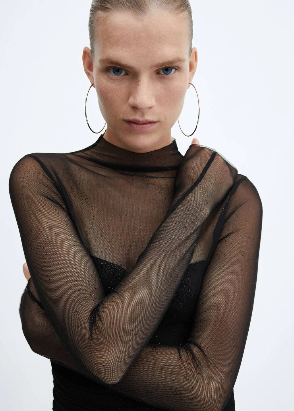 tissu en maille filet, coupe courte, coupe cintree, col montant, manches longues, ornements decoratifs brillants, doublure, collection fetes et ceremoniesComposition: 83% polyester,17% elasthanne. Interieur: 94% polyester,6% elasthanne