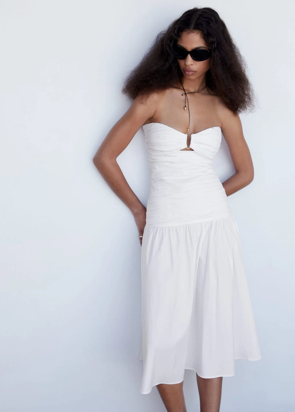 tissu de coton melange, matiere drapee, coupe cintree, coupe midi, bustier, sans manches, fermeture eclair a l’arriere, detail metallique, doublureComposition: 82% coton,15% polyamide,3% lyocell. Doublure: 100% polyester
